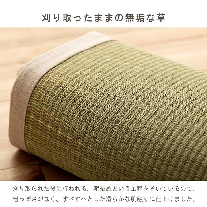 表地=い草(袋二二目織)裏地=ポリエステル100%(再生不織布滑り止め加工)ヘリ=麻100% 原産国:日本製