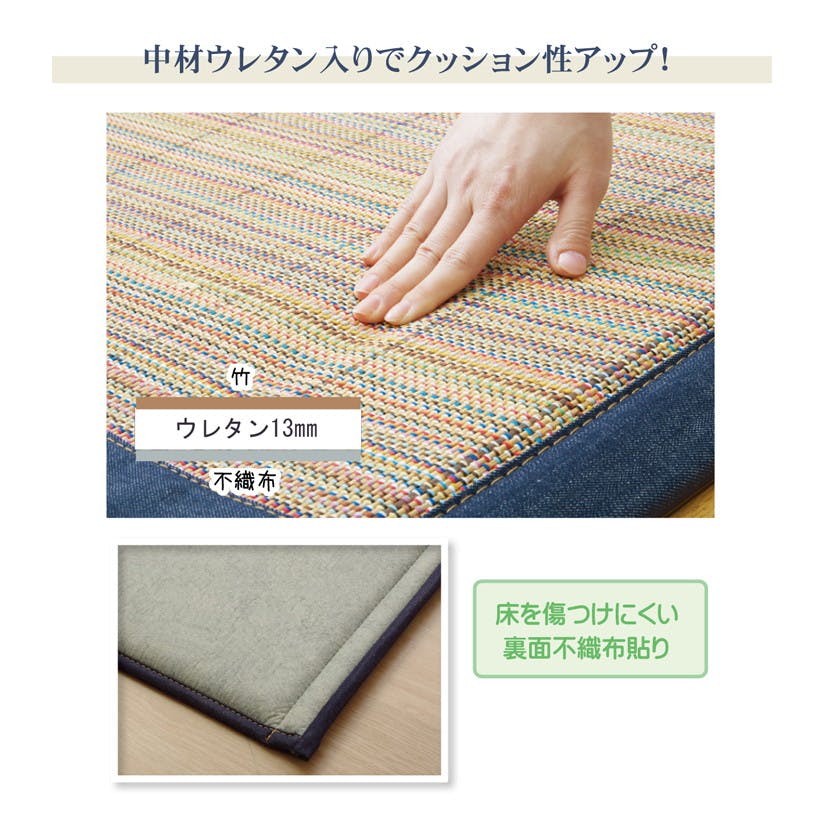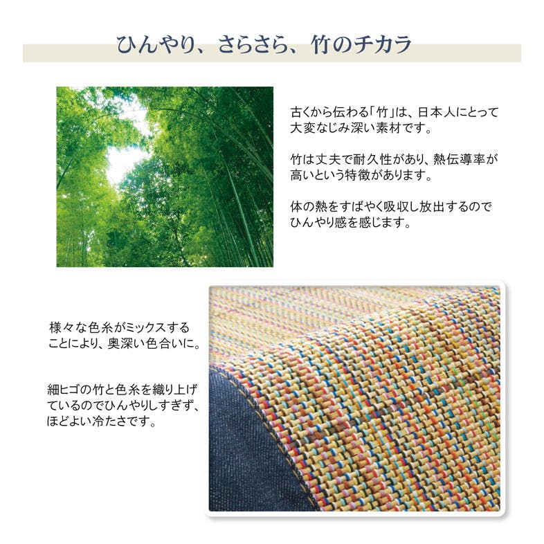表地=竹 裏地=ポリエステル100%【不織布】 中材=ウレタンフォーム13mm ヘリ=綿100% 原産国:中国製