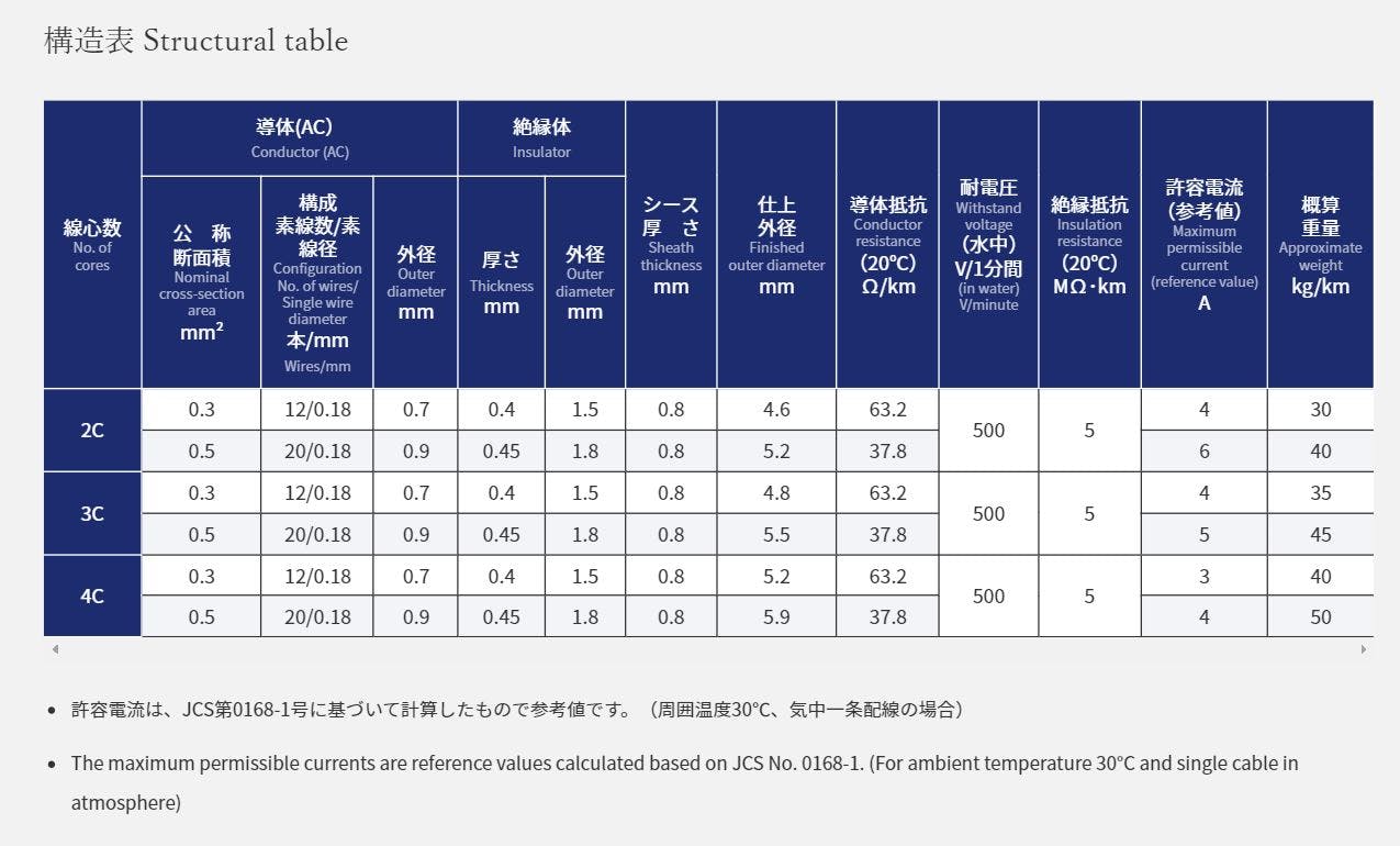 ・100V未満の電子機器等の伝送用として使用されます。・軽量でしかも仕上外径が細く柔軟性がありますので、配線時の取扱いが容易です。・RoHS24指令対応製品です。