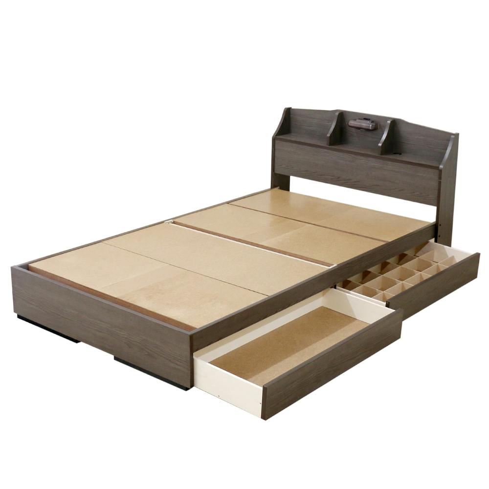 友澤木工 棚 照明 コンセント 引出し付ベッド アッシュブラウン セミダブル 圧縮ロールポケット&ボンネルマットレス付 日本製フレーム 省スペース ライト ベッド 収納 マット付き 宮付き ベット 4582641959931 K321-89-SD(16324D) 【別送品】