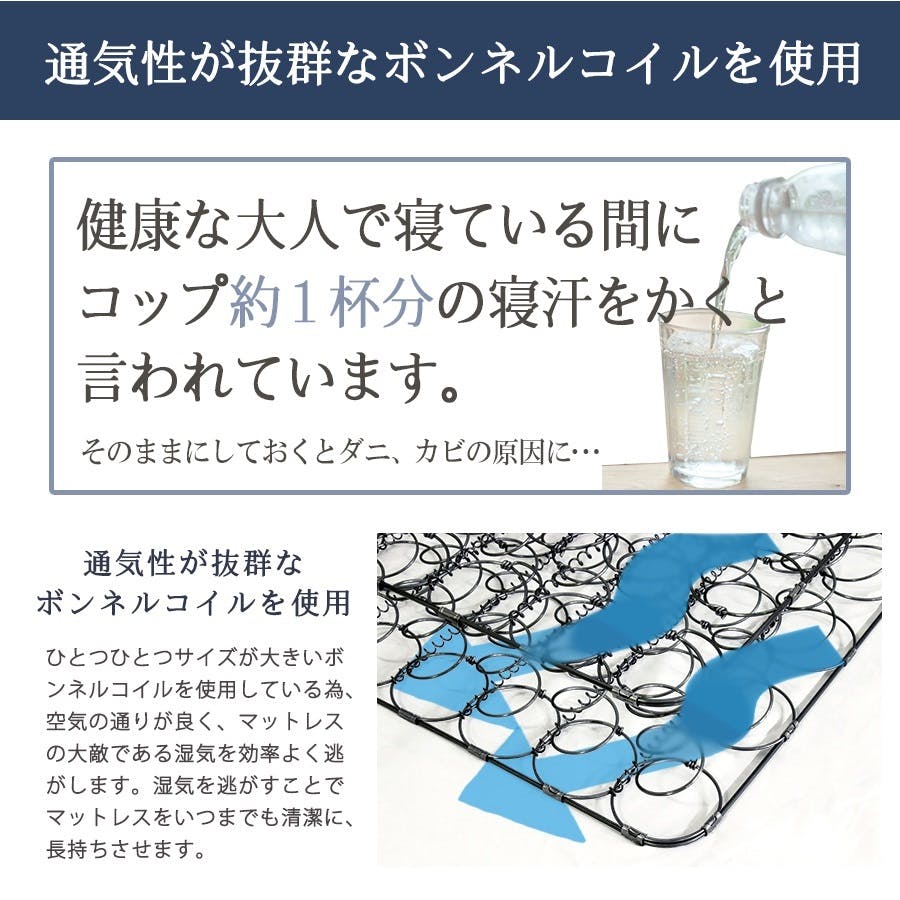 フレーム主材:プリント化粧板 マットレス主材/2.5mmボンネルコイルスプリング(コイル数/S:216)、ウレタン、フェルト、ポリエステルフレーム:日本製 マットレス:中国製
