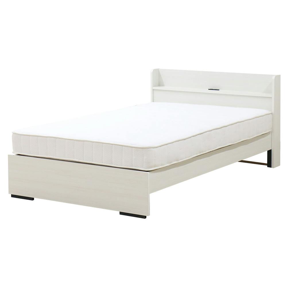 友澤木工 木製ボルトレスベッド 棚 コンセント付 クラシックホワイト シングル 日本製 圧縮ロール両面ポケットコイルマットレス付 工具不要 簡単組立 ベッド ボルトレス 寮 ネジなし ベット 354-86-SW(108CE8) 【別送品】