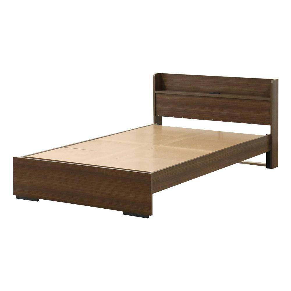 友澤木工 木製ボルトレスベッド 棚 コンセント付 ウォルナット シングル 圧縮ロール片面ポケットコイルマットレス付 工具不要 簡単組立 ベッド ボルトレス 寮 ネジなし ベット 354-87-SW(172BDG) 【別送品】