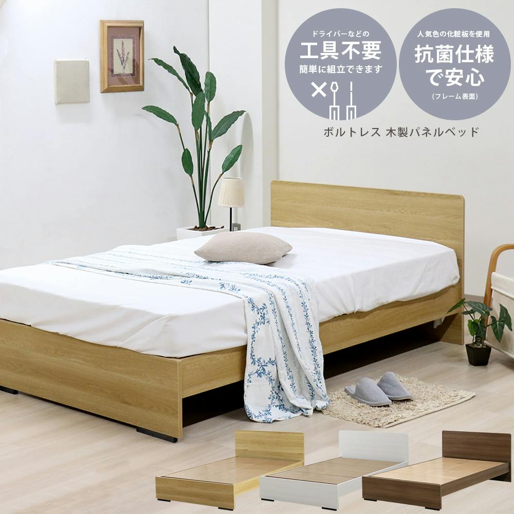 友澤木工 木製ボルトレスベッド パネルタイプ ナチュラル シングル 日本製ボンネルコイルマットレス付 工具不要 簡単組立 ベッド ボルトレス 寮 ネジなし ベット 374-85-SW(10816B) 【別送品】
