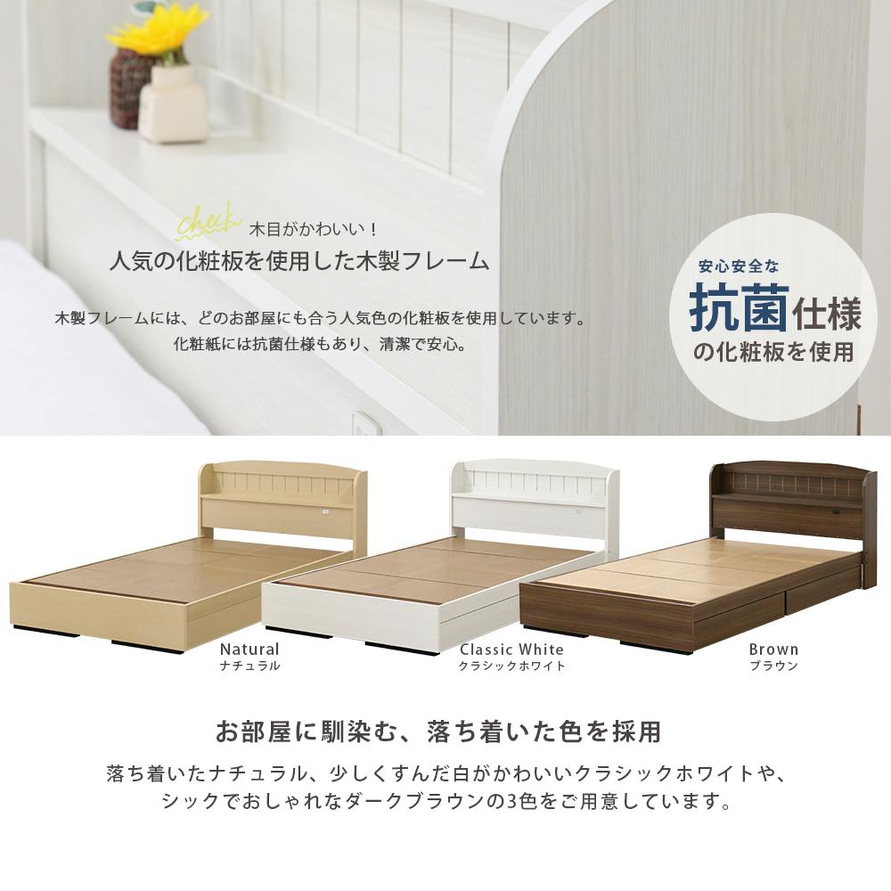 ※必ず厚さ15cm以上のスプリングマットレスを載せてご使用ください。※実際の商品の色にできるだけ近付けるよう撮影を行なっておりますが、商品の色はご使用のモニターによって実際の明るさや色と多少異なって見える場合がございます。※こちらの商品はお客様組立商品となります。ドライバーをご用意下さい。