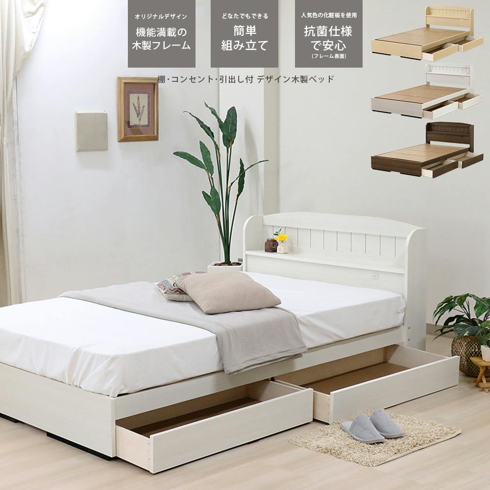 ◆カントリー調の雰囲気のヘッドボードがかわいらしい棚・収納付きベッド。枕元には1口コンセント、ベッド下には2杯の大型引出しを備えた機能性も魅力です。ボンネルコイルマットレス付き。◆個口数:5個口(1)1035×295×800(2)2045×100×73(3)1005×170×490(4)940×480×95(5)900×1950×170(mm)