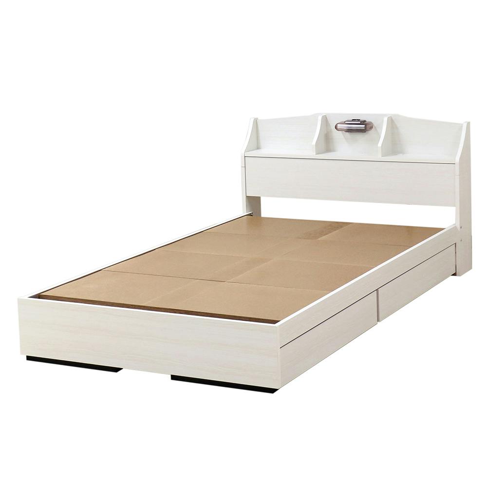 友澤木工 棚 照明 コンセント 引出し付ベッド クラシックホワイト シングル 圧縮ロール両面ポケットコイルマットレス付 通気性抜群 ライト ベッド 収納 マット付き 宮付き ベット K321-86-SW(172BDH) 【別送品】
