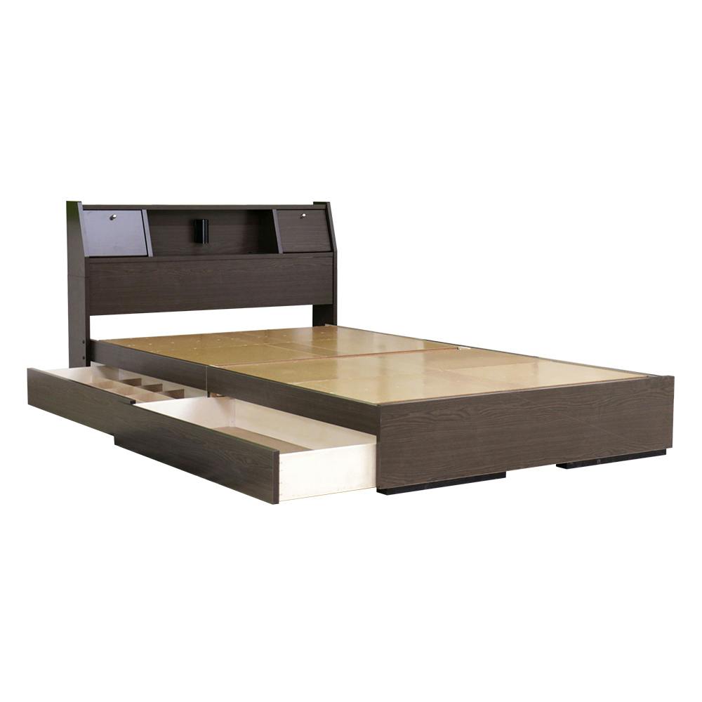 友澤木工 棚 照明 コンセント フラップテーブル 引出し付ベッド ダークブラウン ダブル ボンネルコイルマットレス 通気性抜群 ライト ベッド 収納 マット付き 宮付き ベット K333-56-D(108165) 【別送品】
