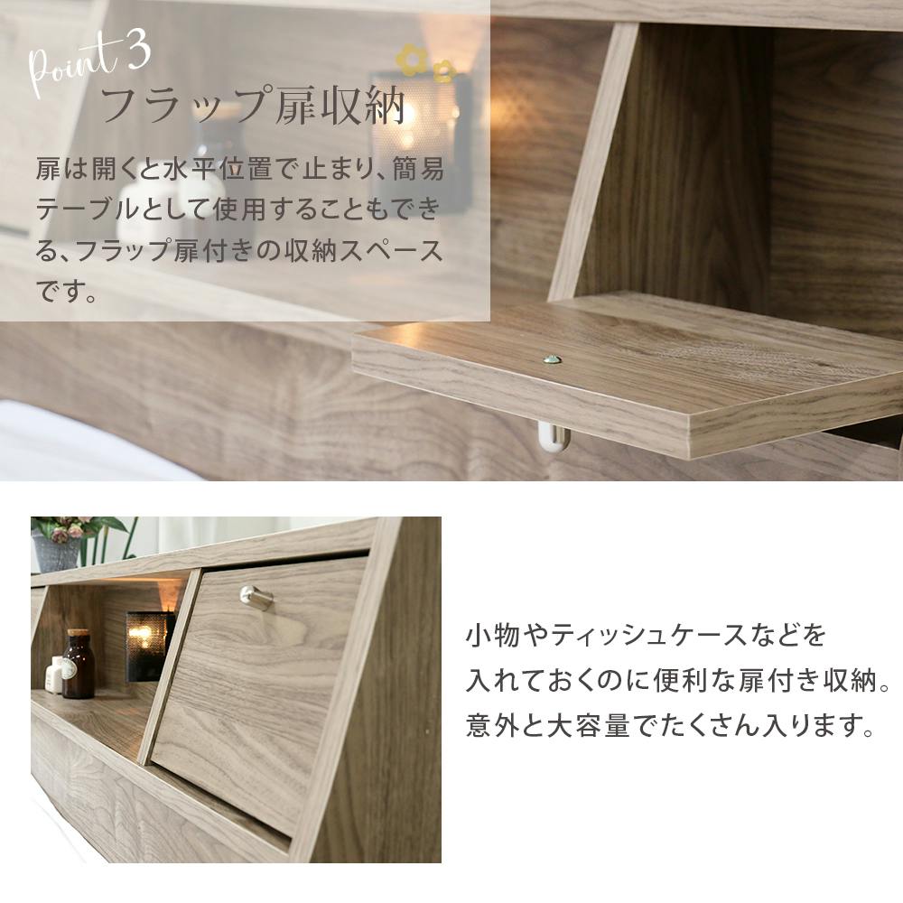 友澤木工 棚 照明 コンセント フラップテーブル 引出し付ベッド ヴィンテージナチュラル シングル ボンネルコイルマットレス 通気性抜群 ライト ベッド 収納 マット付き 宮付き ベット K333-90-SW(108165) 【別送品】