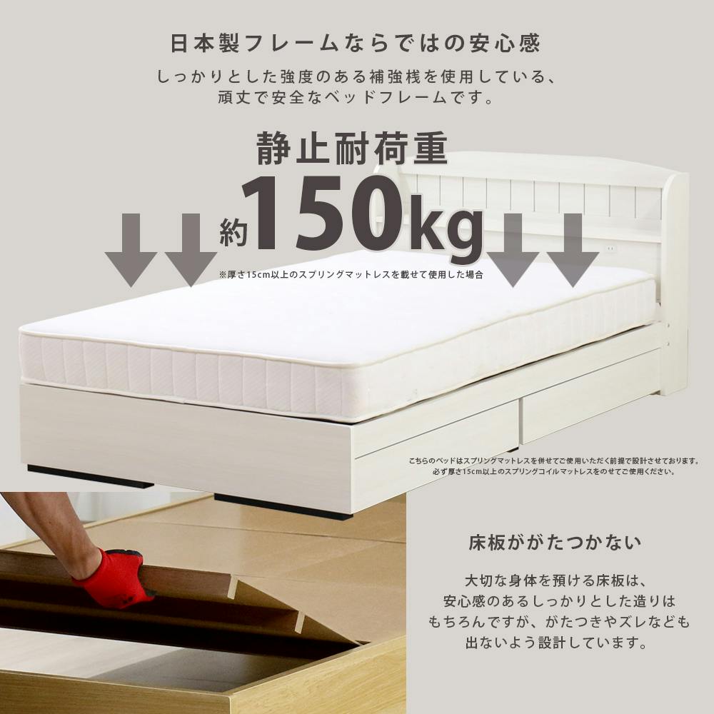 ■お部屋が華やかになるカントリー調のデザインベッドです。■小物を置くのに便利なワイド棚付き。■枕元には1口コンセント付き。■ベッド下には2杯の大型引出しを備えた機能性も魅力です。