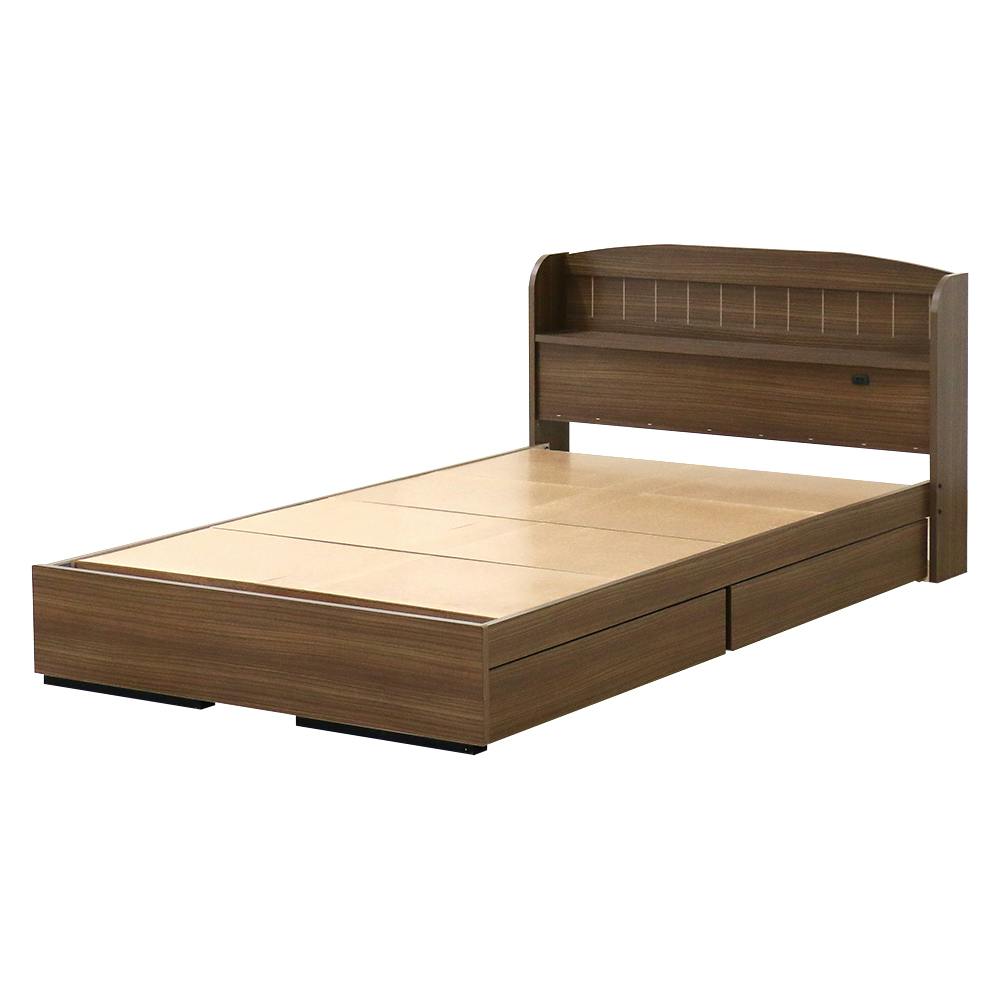 友澤木工 棚 コンセント 引き出し付きカントリー調ベッド ウォルナット ダブル フレームのみ 4580238974015 かわいい 収納 ベッド 子供部屋 通気性抜群 ベット 4580238974015 A322-87-D 【別送品】