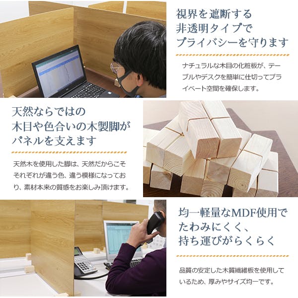 ■木製脚にパネルを差し込むだけのかんたん組立。しっかりと自立するので、どんな場所でも設置できます。■天然木の木製脚がパネルを支えます。天然木特有の1つずつ違う節や、色味なども魅力のひとつです。■軽量で持ち運びらくらく■カラーは選べる3種類