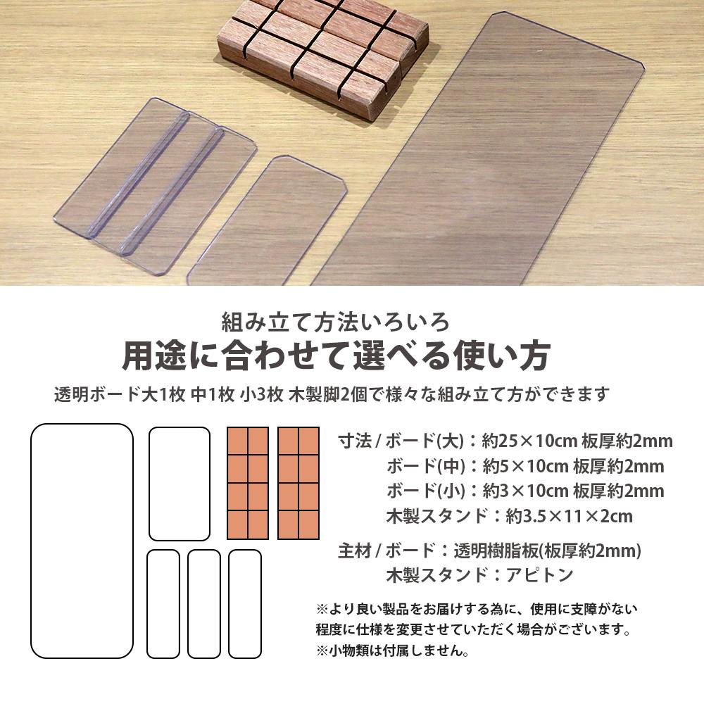 ■本体主材/ボード:透明樹脂板(板厚約2mm)■木製スタンド:アピトン 日本製