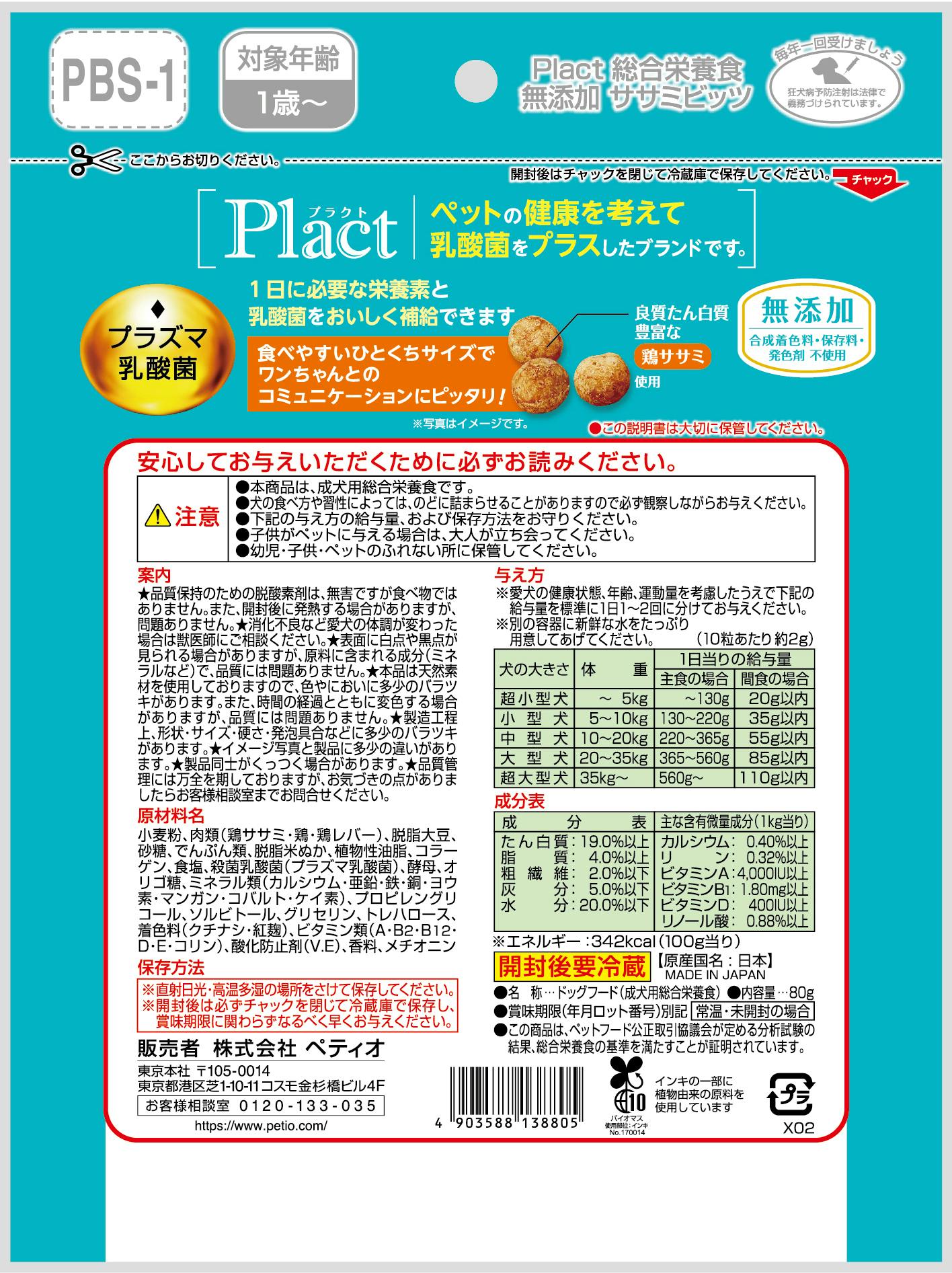 プラクト 総合栄養食 無添加 ササミビッツ ササミ80g 乳酸菌 ひとくちサイズ 免疫力 3418371001【別送品】