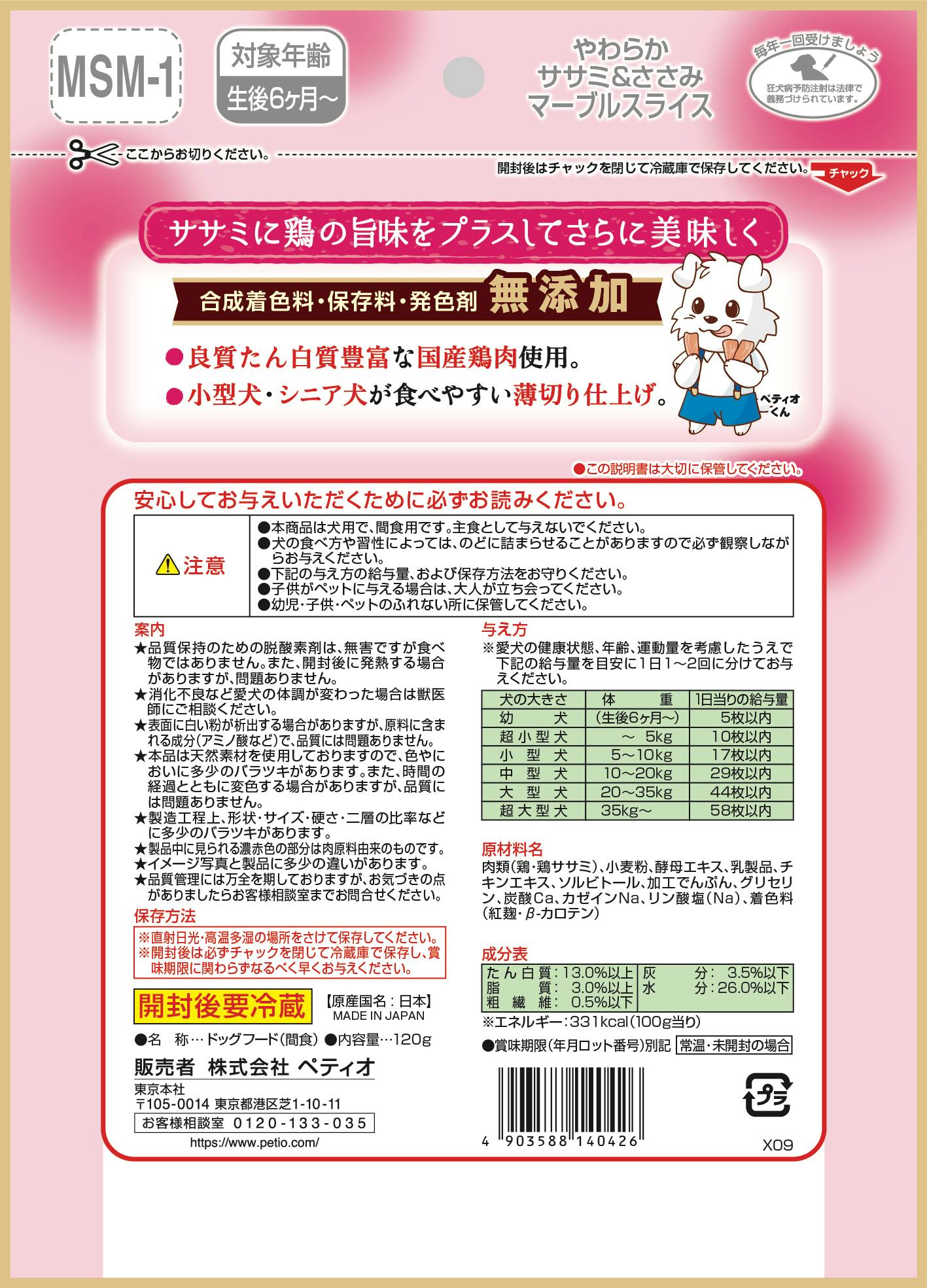 やわらかササミ&ささみ無添加マーブルスライス120g ささみ 無添加 やわらかい 3418674001【別送品】