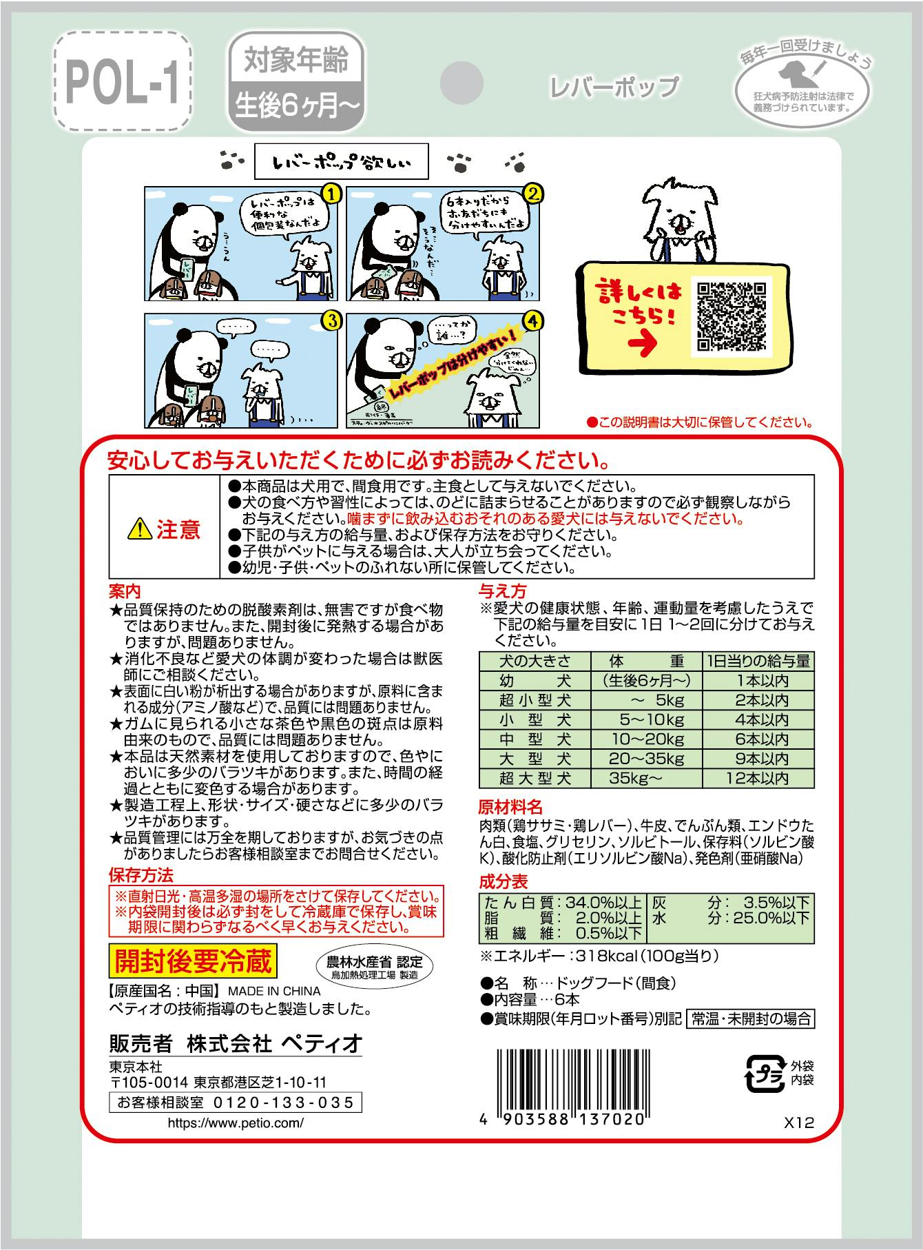 レバーポップ6本入 鉄分豊富 個包装 犬おやつ 3417965001【別送品】