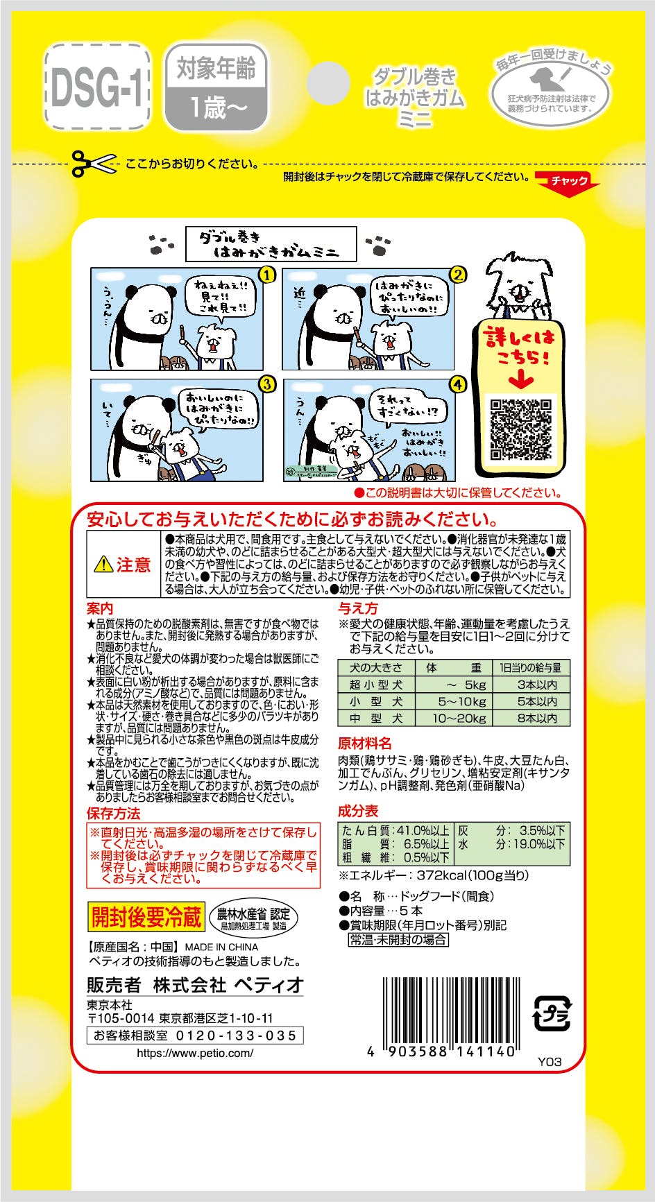 ペティオ W巻きはみがきガムミニ5本 4903588141140【別送品】