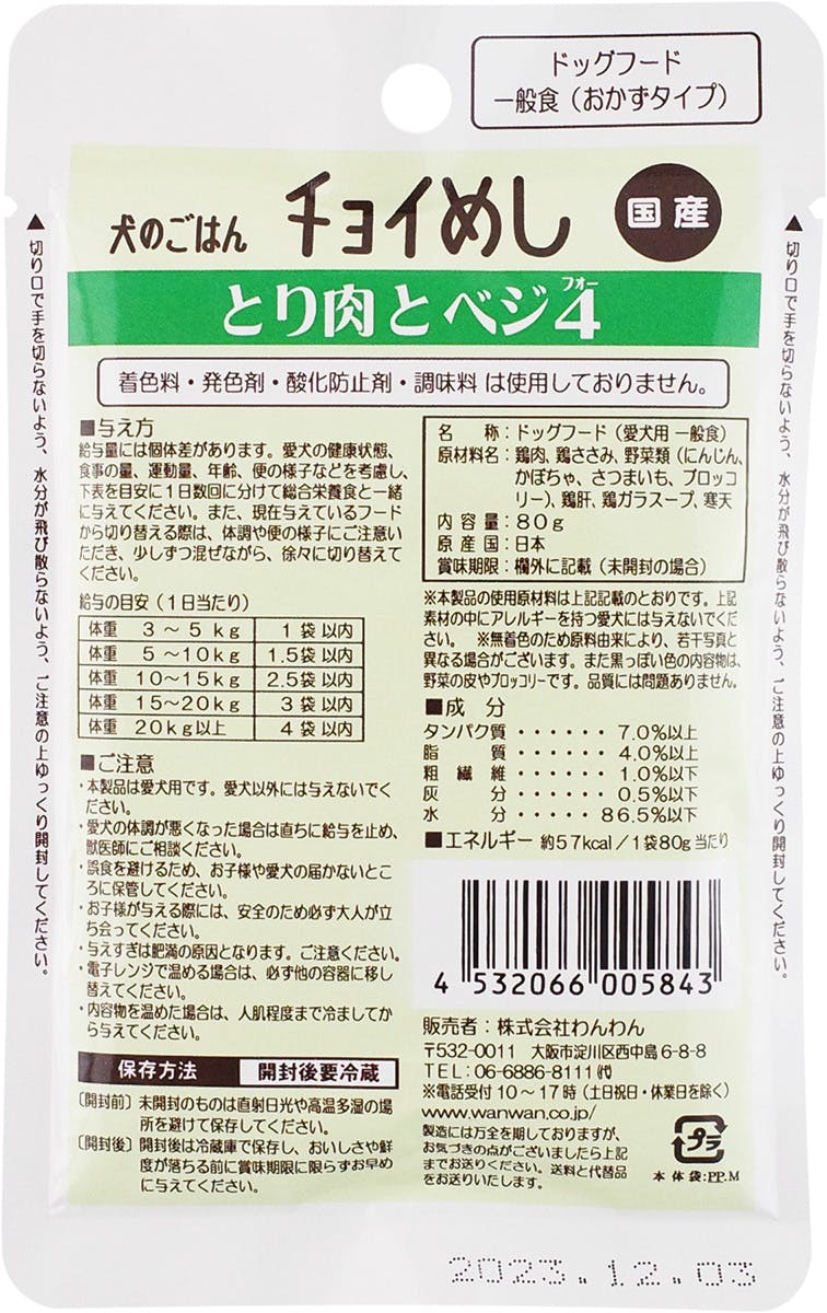 チョイめし とり肉とベジ480g 栄養補助 ペーストタイプ ドッグフード 5740226001【別送品】