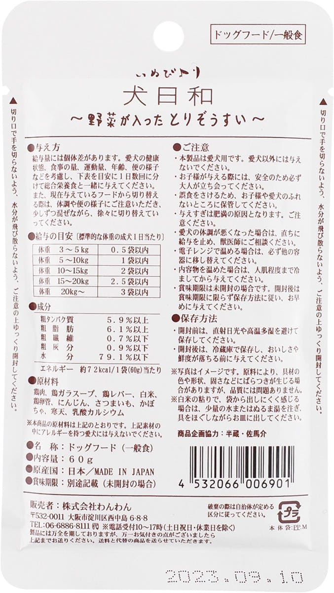 わんわん 犬日和レトルト 野菜が入ったとりぞうすい60g 4532066006901【別送品】