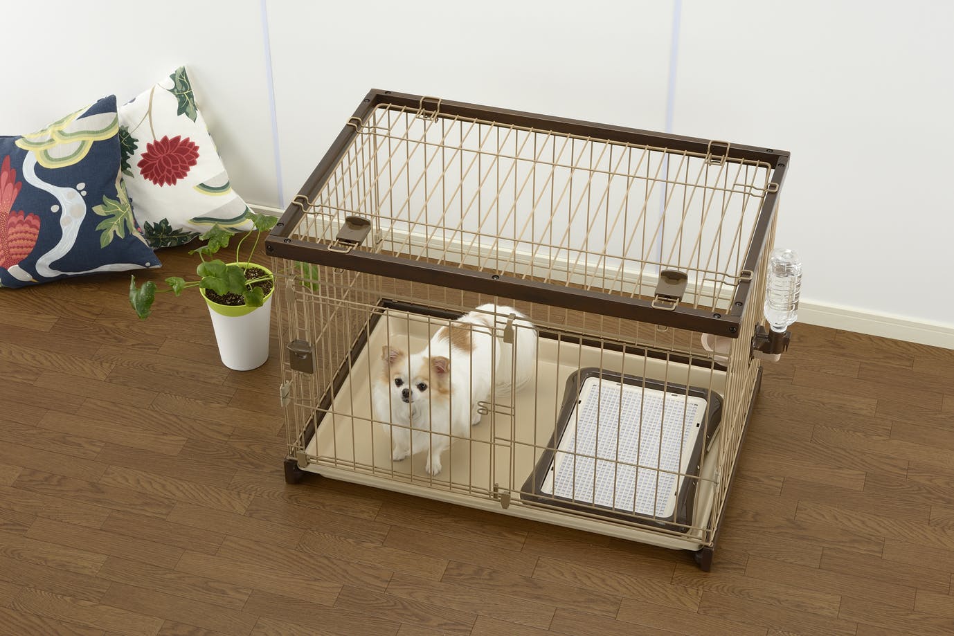 屋根を取り付けることで無駄なジャンプによるケガを防止します。上からの落下物などからペットを守ります。