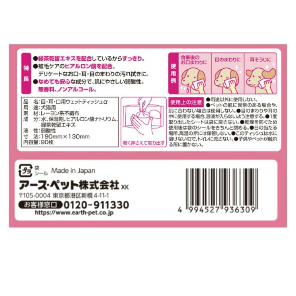 アース・ペット ウエットティッシュαお口・耳・目のまわり90枚 4994527936309【別送品】