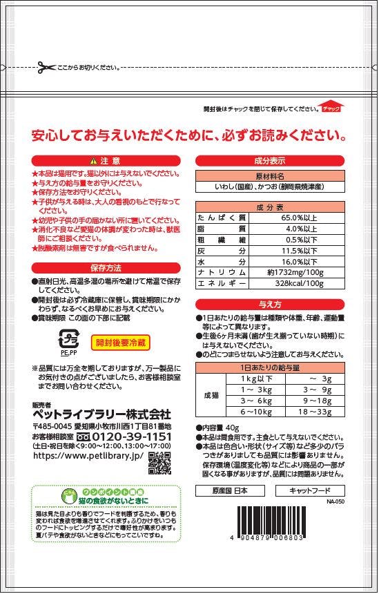 ●本品は猫用です。猫以外には与えないでください。●与え方の給与量をお守りください。●保存方法をお守りください。●子供が与えるときは、大人の看視のもとで行ってください。●幼児や子供の手の届かない所においてください。●消化不良によど愛猫の体調が変わった時は、獣医師にご相談ください。●脱酸素剤は無害ですが食べられません。