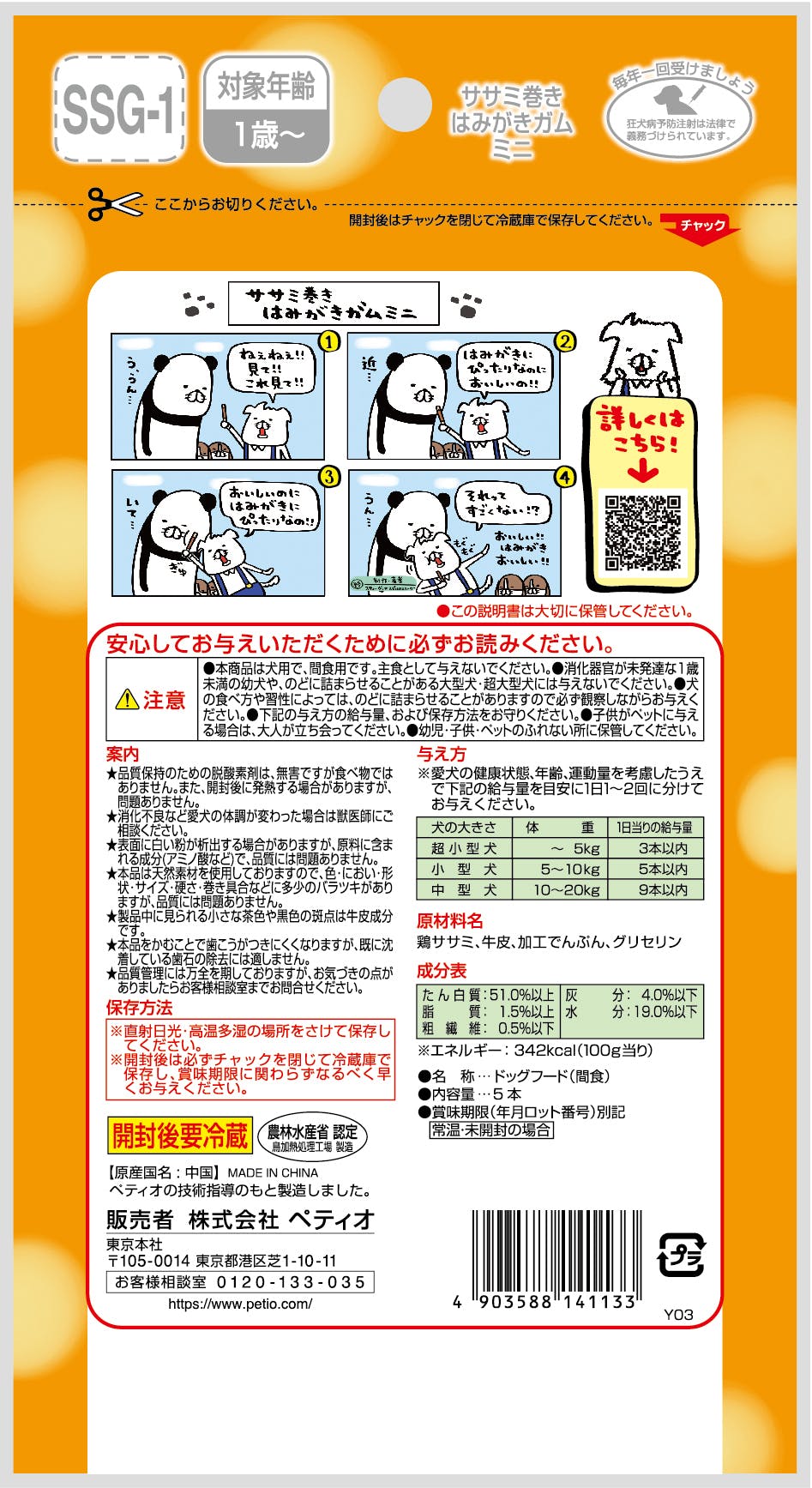 ペティオ ササミ巻きはみがきガムミニ5本 4903588141133【別送品】