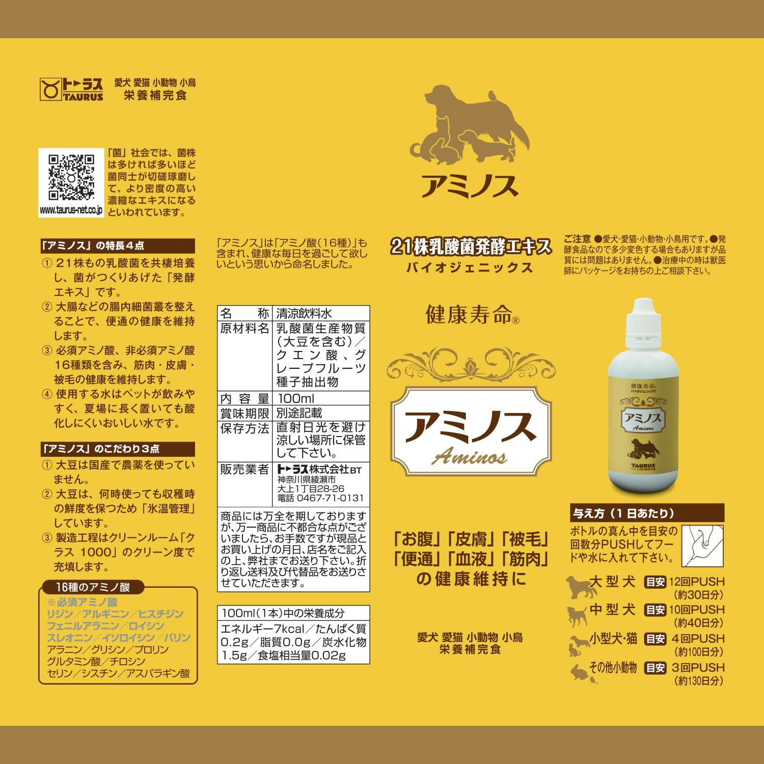 • 乳酸菌生産物質 アミノス100ml 乳酸菌 液状サプリ 栄養補助 3420077001【別送品】
