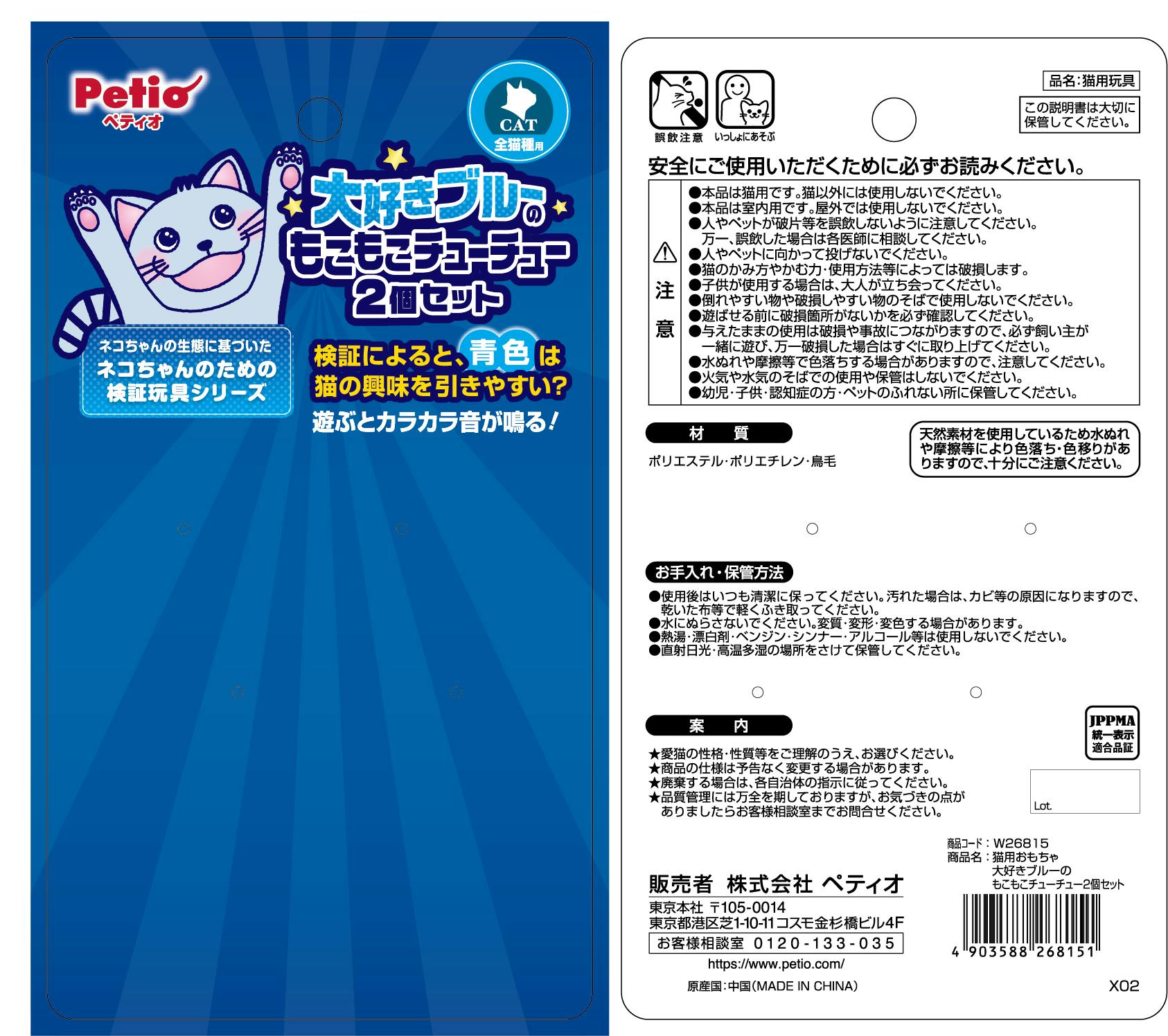 猫用おもちゃ 大好きブルーのもこもこチューチュー2個セット 手洗い可能 足裏 猫砂落とし 3418473001【別送品】