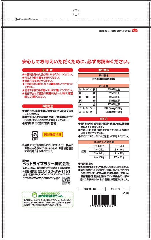 ●本品は猫用です。猫以外には与えないでください。●与え方の給与量をお守りください。●保存方法をお守りください。●子供が与えるときは、大人の看視のもとで行ってください。●幼児や子供の手の届かない所においてください。●消化不良によど愛猫の体調が変わった時は、獣医師にご相談ください。