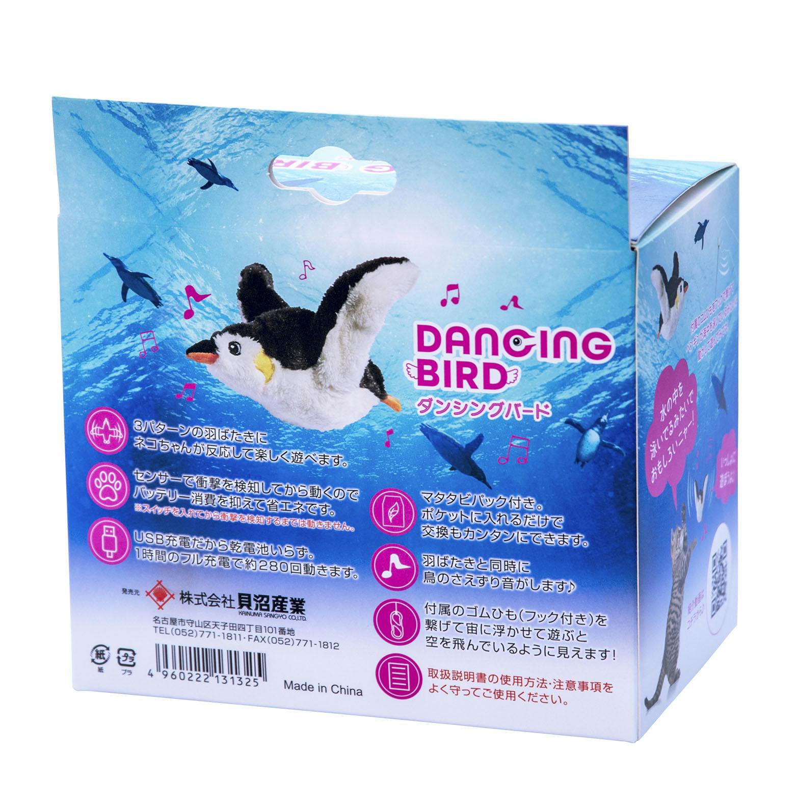 衝撃センサーで羽ばたきとさえずり音が聞こえる付属の紐で宙に浮かせた羽ばたきで好奇心を刺激します