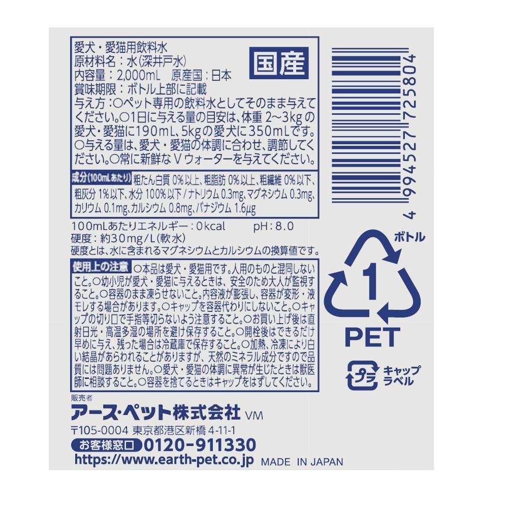 ペットの天然水 Vウォーター2000ml 軟水 天然水 ミネラルウォーター 3140064001【別送品】