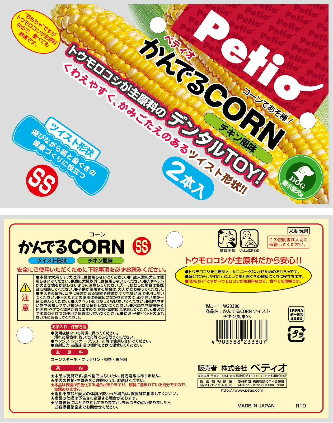 かんでるCORNツイストチキン風味SS デンタルトイ 歯磨き効果 とうもろこし 3412422001【別送品】