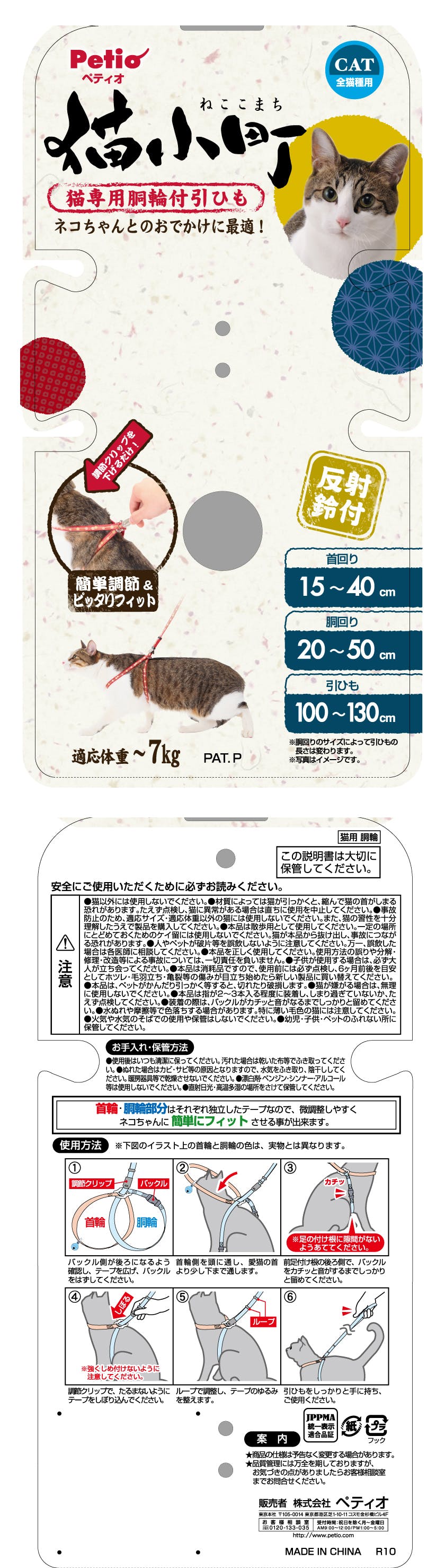 和風テイストの猫用ハーネスリード。簡単調節&ピッタリフィット(調節クリップを下げるだけ!)。
