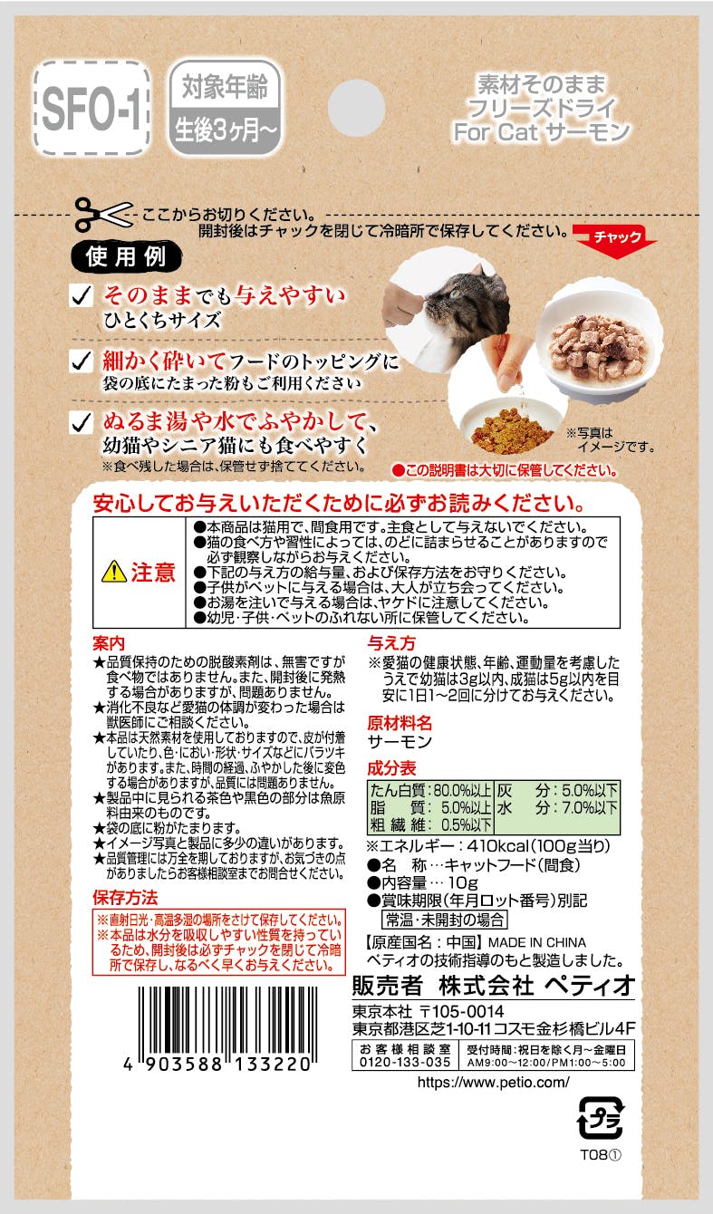 素材そのまま フリーズドライ For Cat サーモン10g フリーズドライ 素材 無添加 3417117001【別送品】