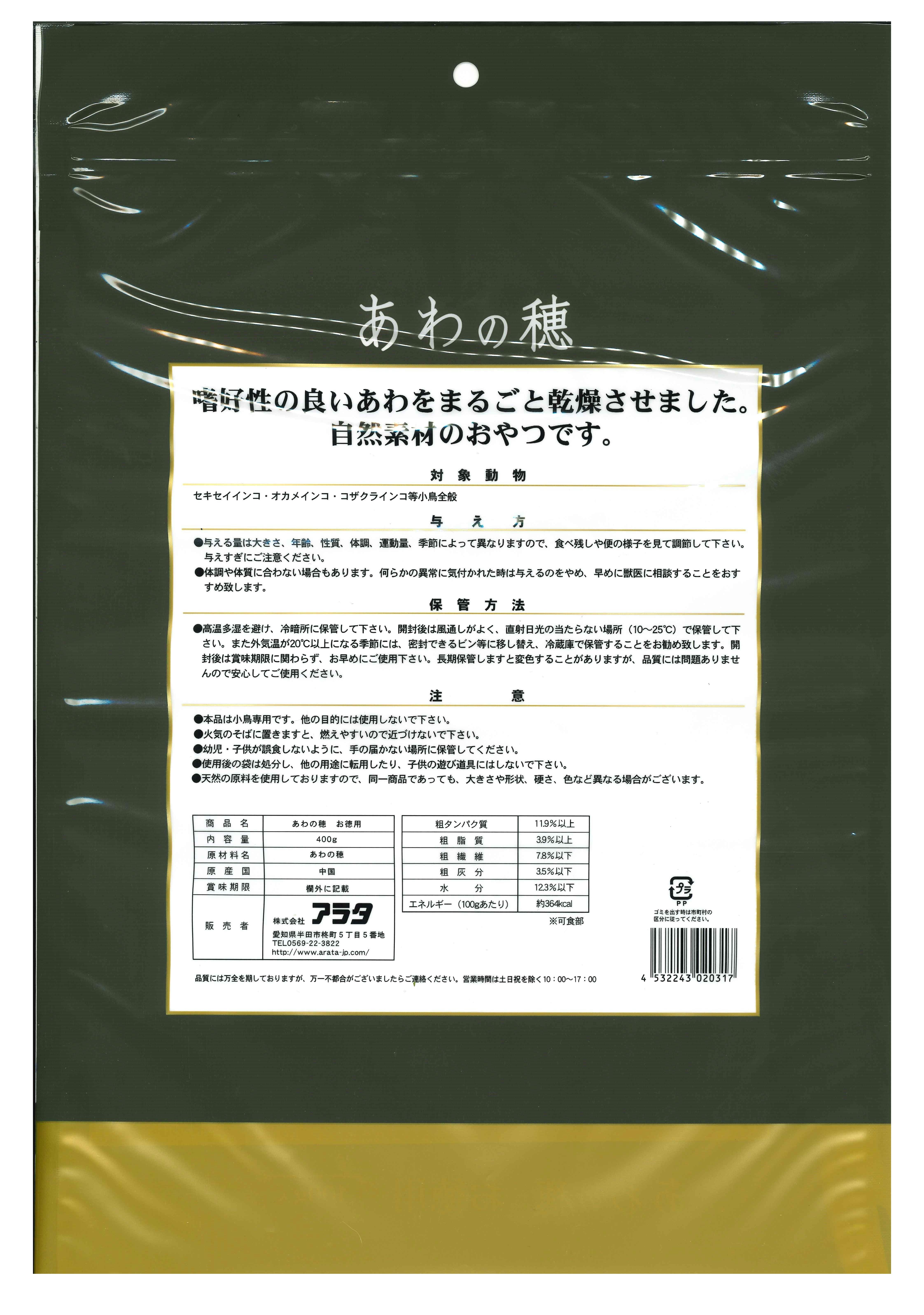粟の穂 お徳用400g あわ 穂 小鳥の健康 2830333001【別送品】