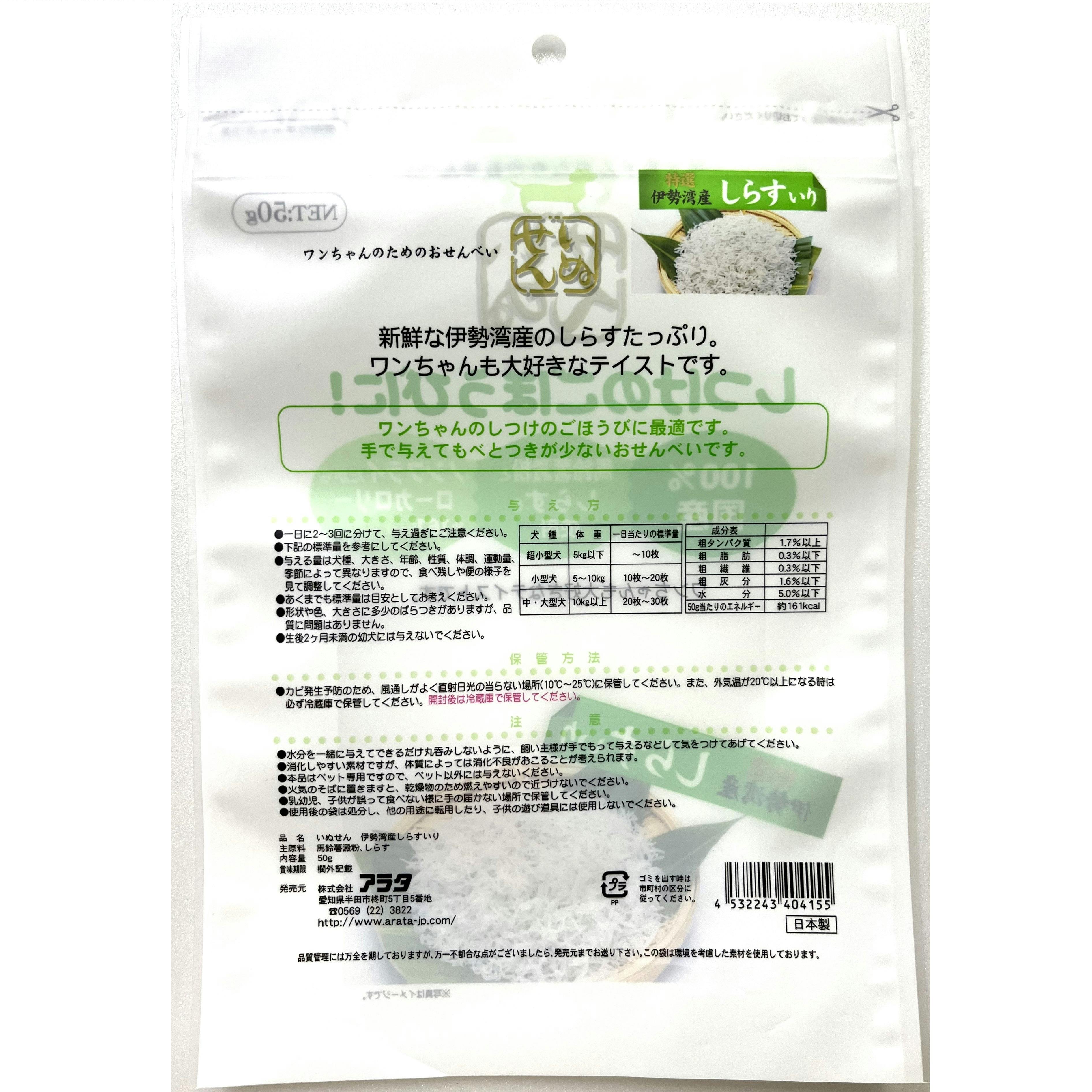 いぬせん 三河一色産しらす入り50g 犬おやつ 犬せんべい しらす入り 2830026001【別送品】