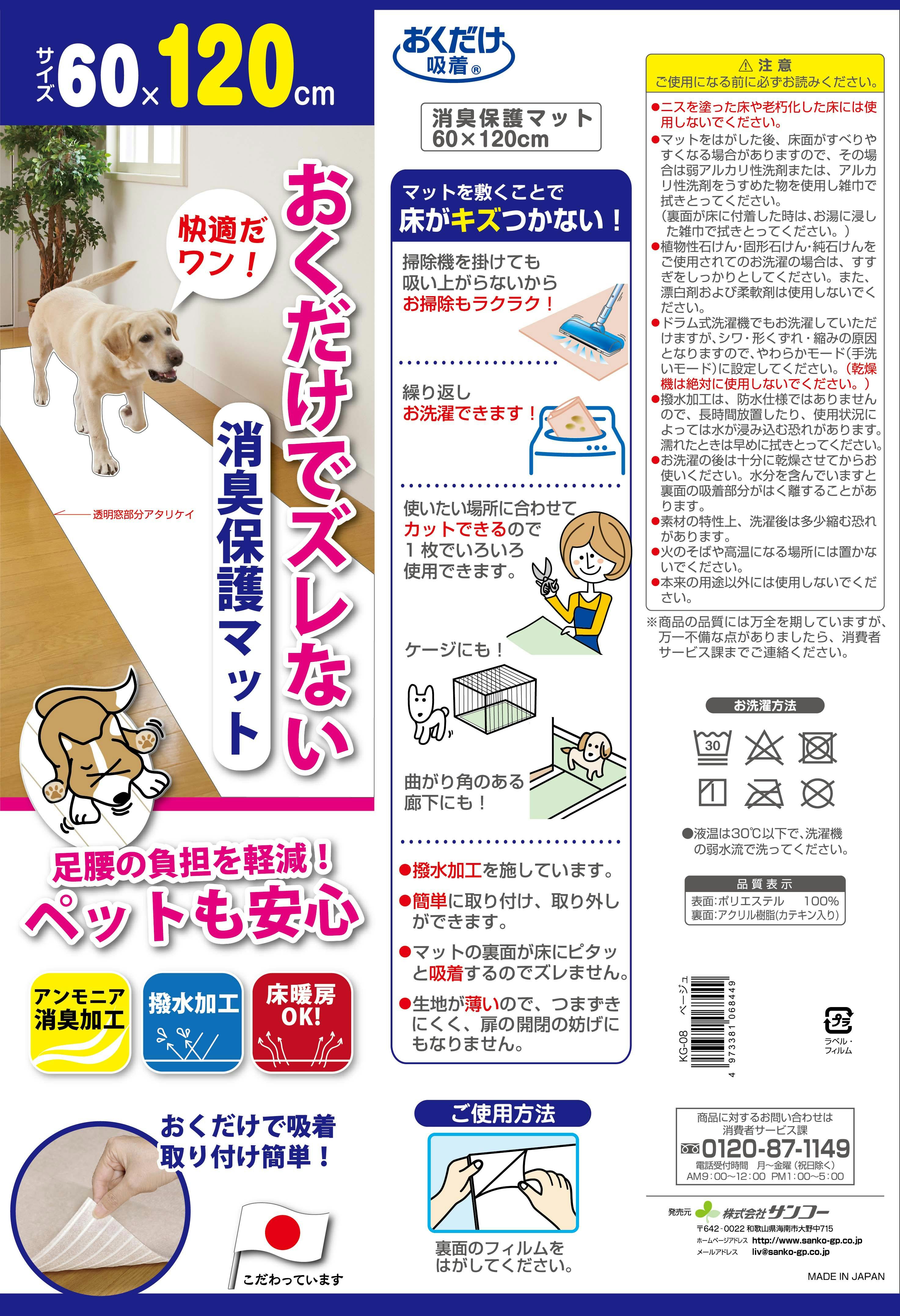 おくだけ吸着 消臭保護マット60×120cmBE 撥水加工 ズレにくい吸着 消臭 2930002001【別送品】