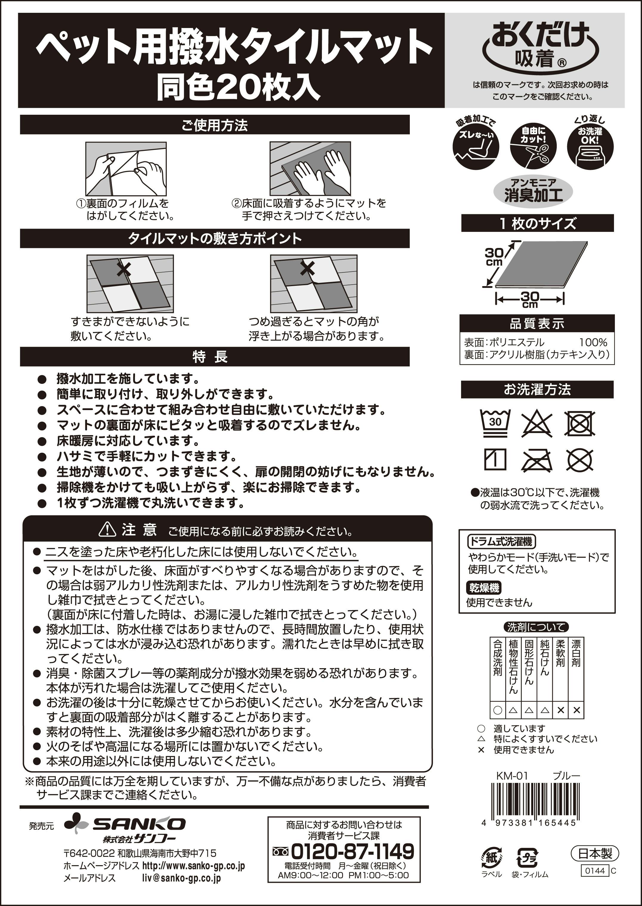 サンコー おくだけ吸着 ペット用撥水タイルマット同色20枚入 BE 4973381165476【別送品】