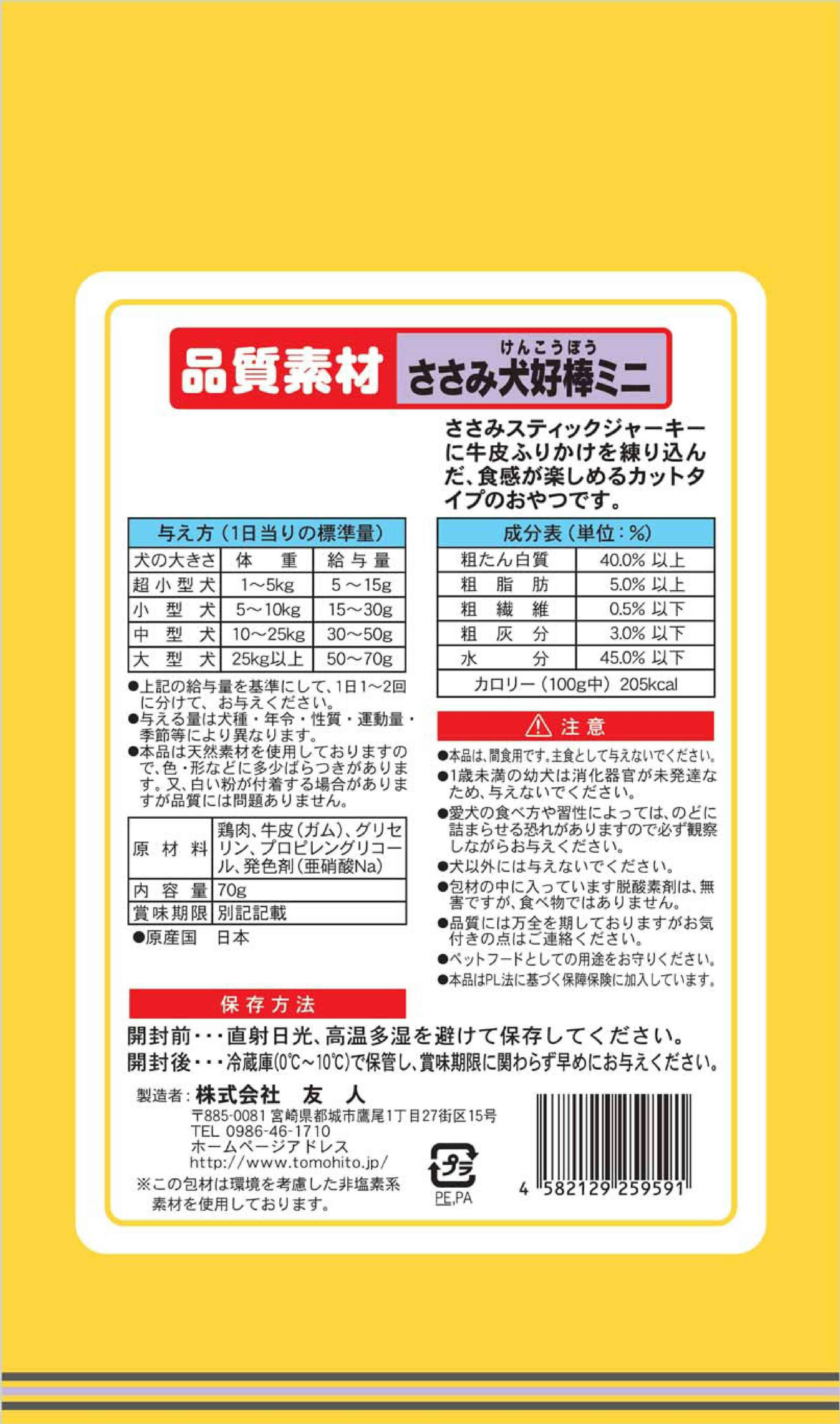 品質素材 ささみ犬好棒ミニ70g 砂肝 国産 ソフト 1340276001【別送品】