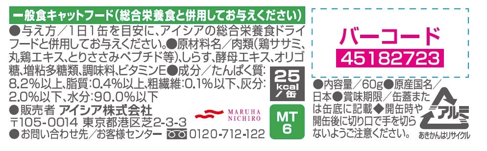 MiawMiawとびきり アイシア しらす入りささみ 60g ウェットフード 缶詰 ささみ 3000733001【別送品】
