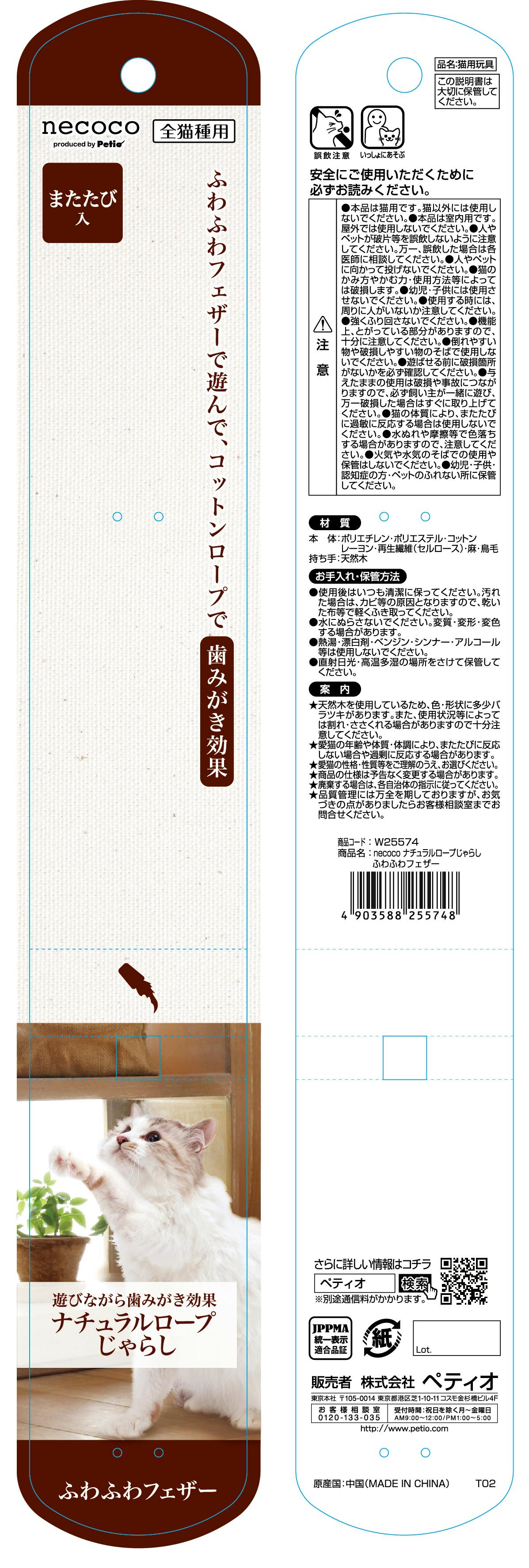 ペティオ necoco ナチュラルロープじゃらし ふわふわフェザー 猫じゃらし ロープ 羽 3416876001【別送品】