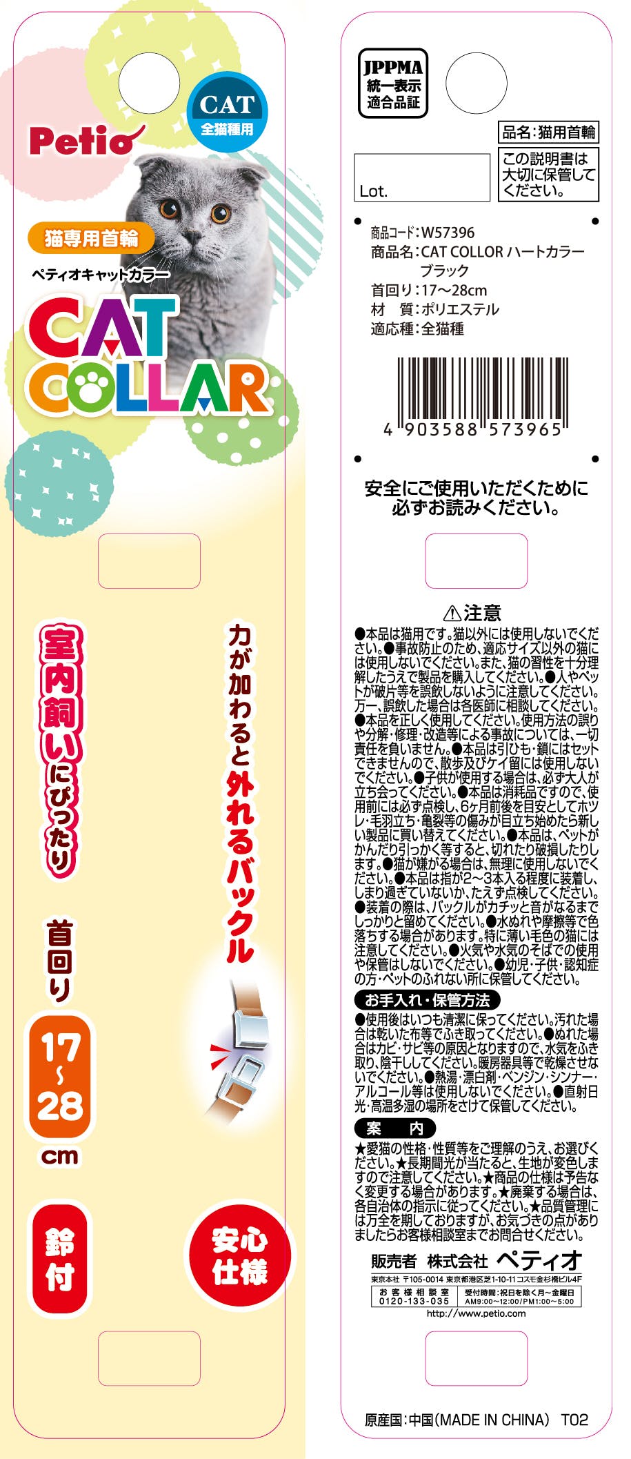 ペティオ CAT COLLAR ハートカラー ブラック 猫用首輪 おしゃれ 安全バックル 3416920001【別送品】