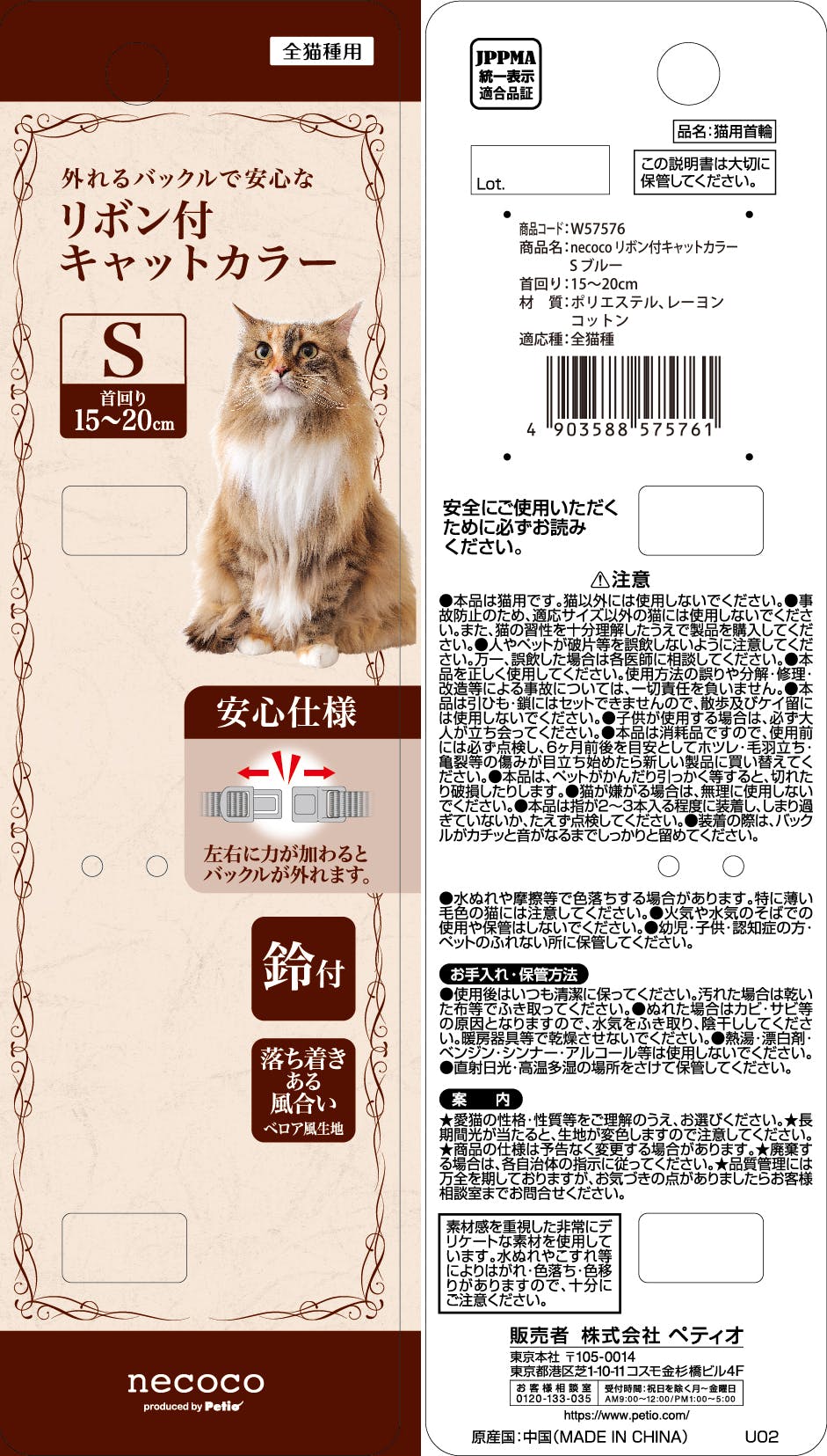 ペティオ necocoリボン付キャットカラー Sブルー 猫首輪 カラー ワンタッチバックル 3417356001【別送品】