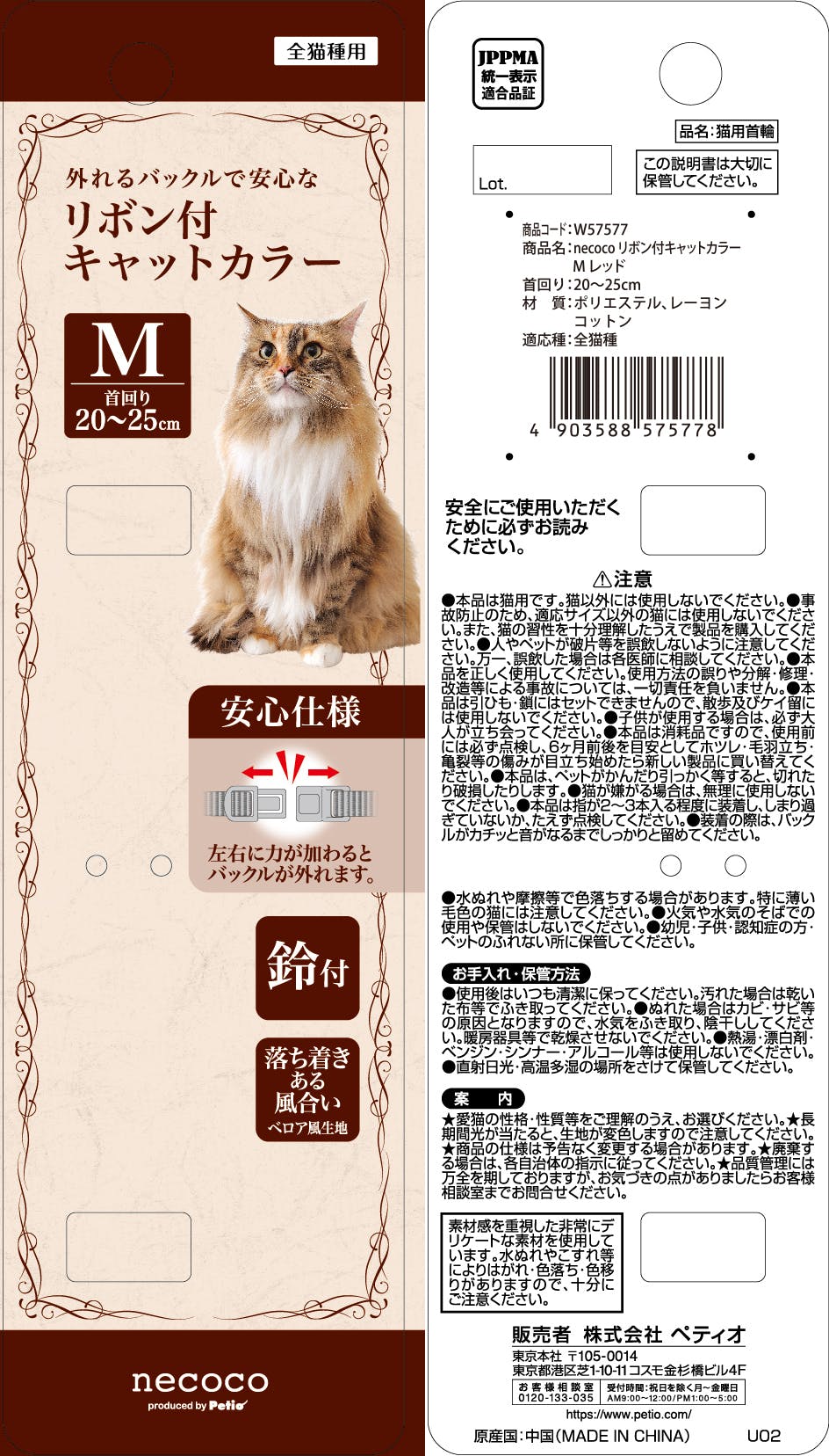 ペティオ necocoリボン付キャットカラー Mレッド 猫首輪 カラー ワンタッチバックル 3417357001【別送品】