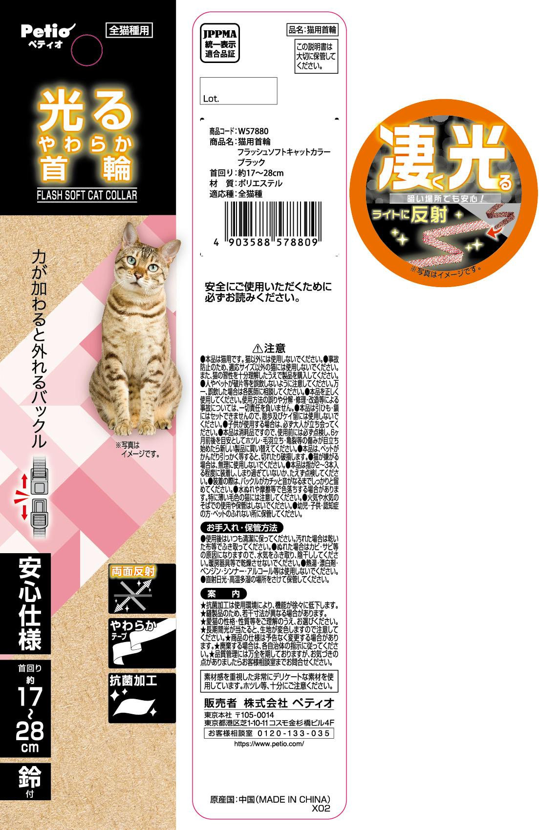 ペティオ 猫用首輪 フラッシュソフトキャットブラック 猫用首輪 やわらかい 反射素材 3418505001【別送品】