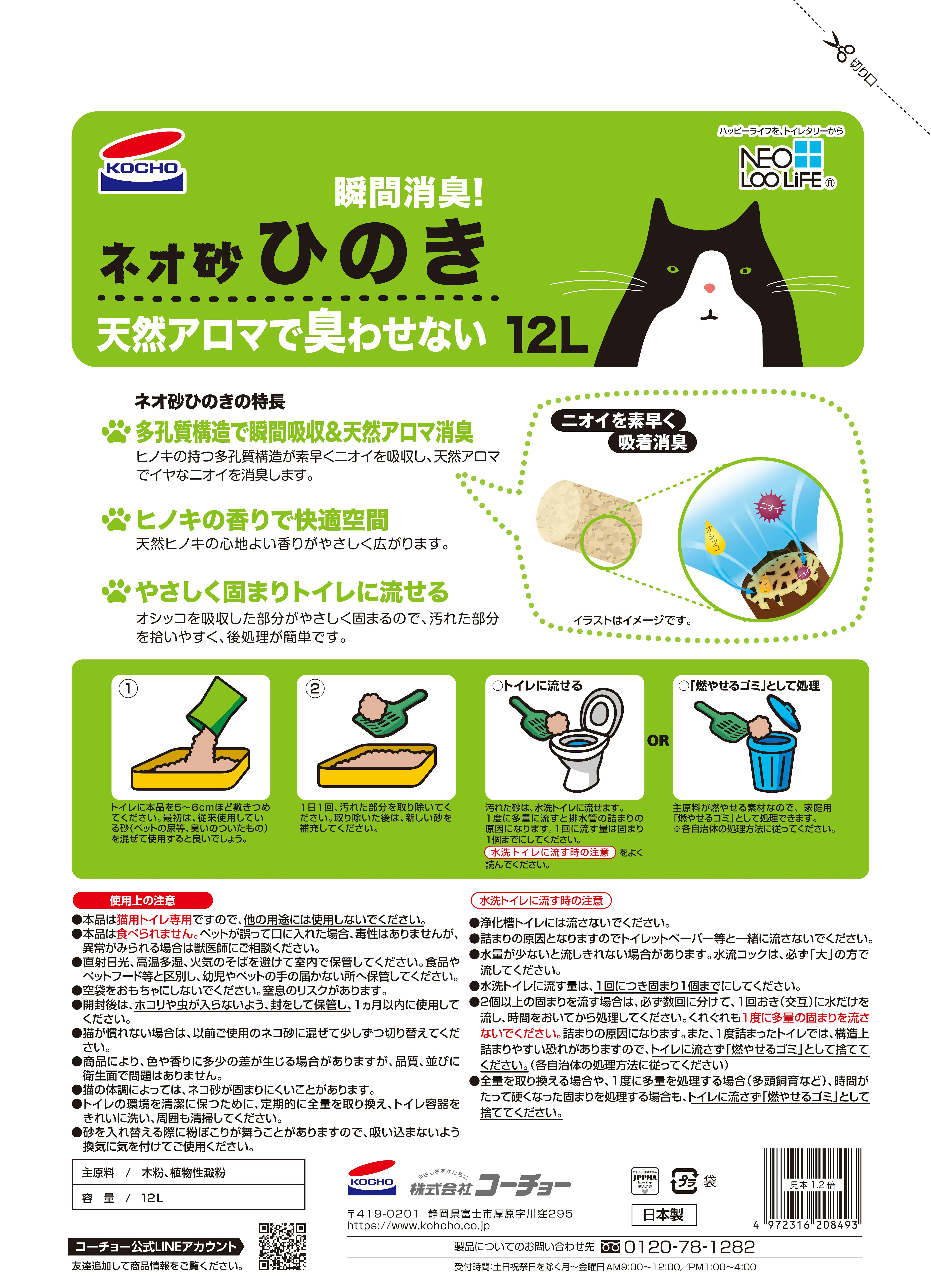 ネオ コーチョー 砂ヒノキ 12L 猫砂 ヒノキ 消臭 3630338001【別送品】