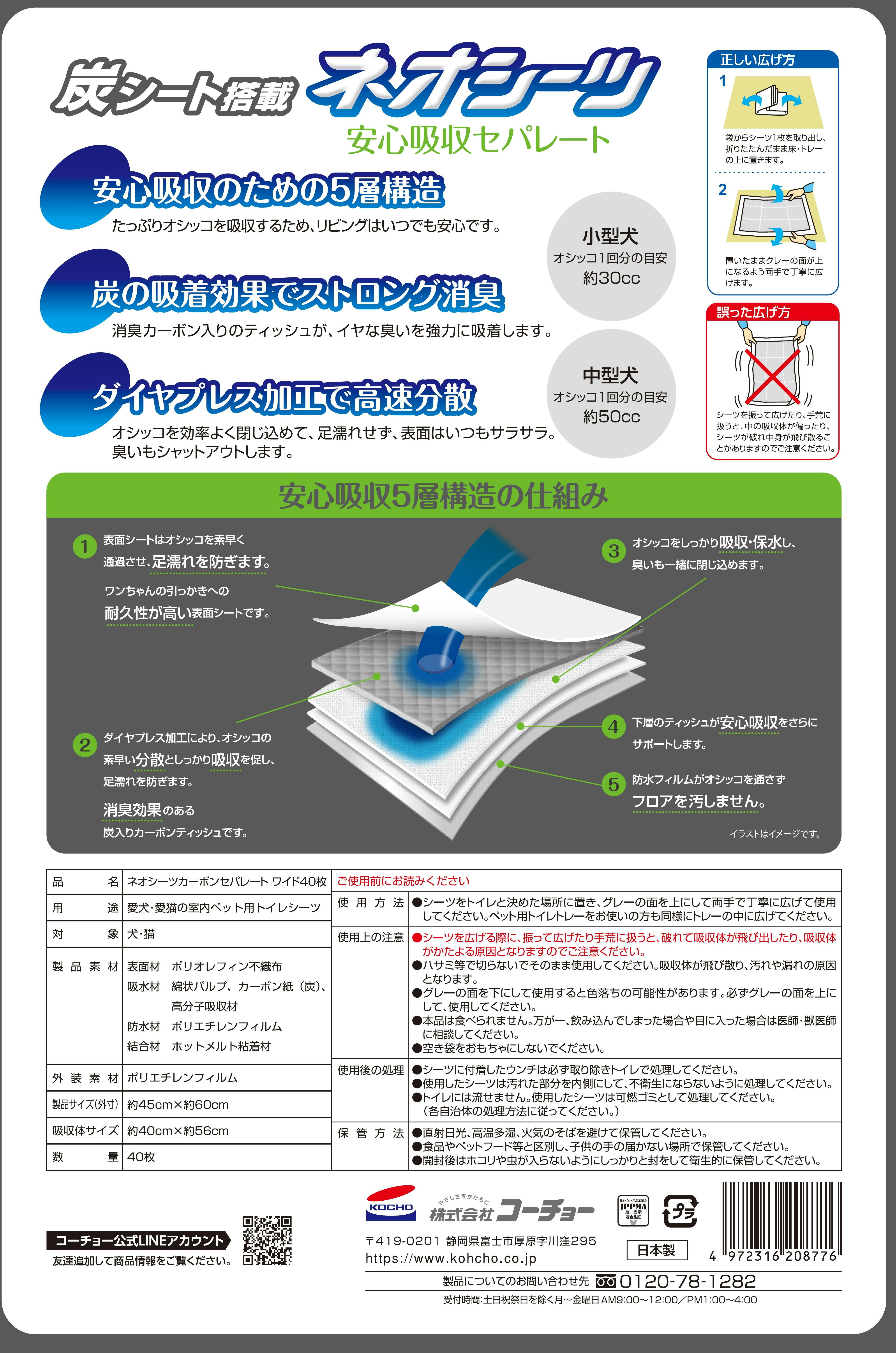 ネオシーツ コーチョー カーボンセパレートワイド 40枚 厚型 消臭 吸収力 3630354001【別送品】