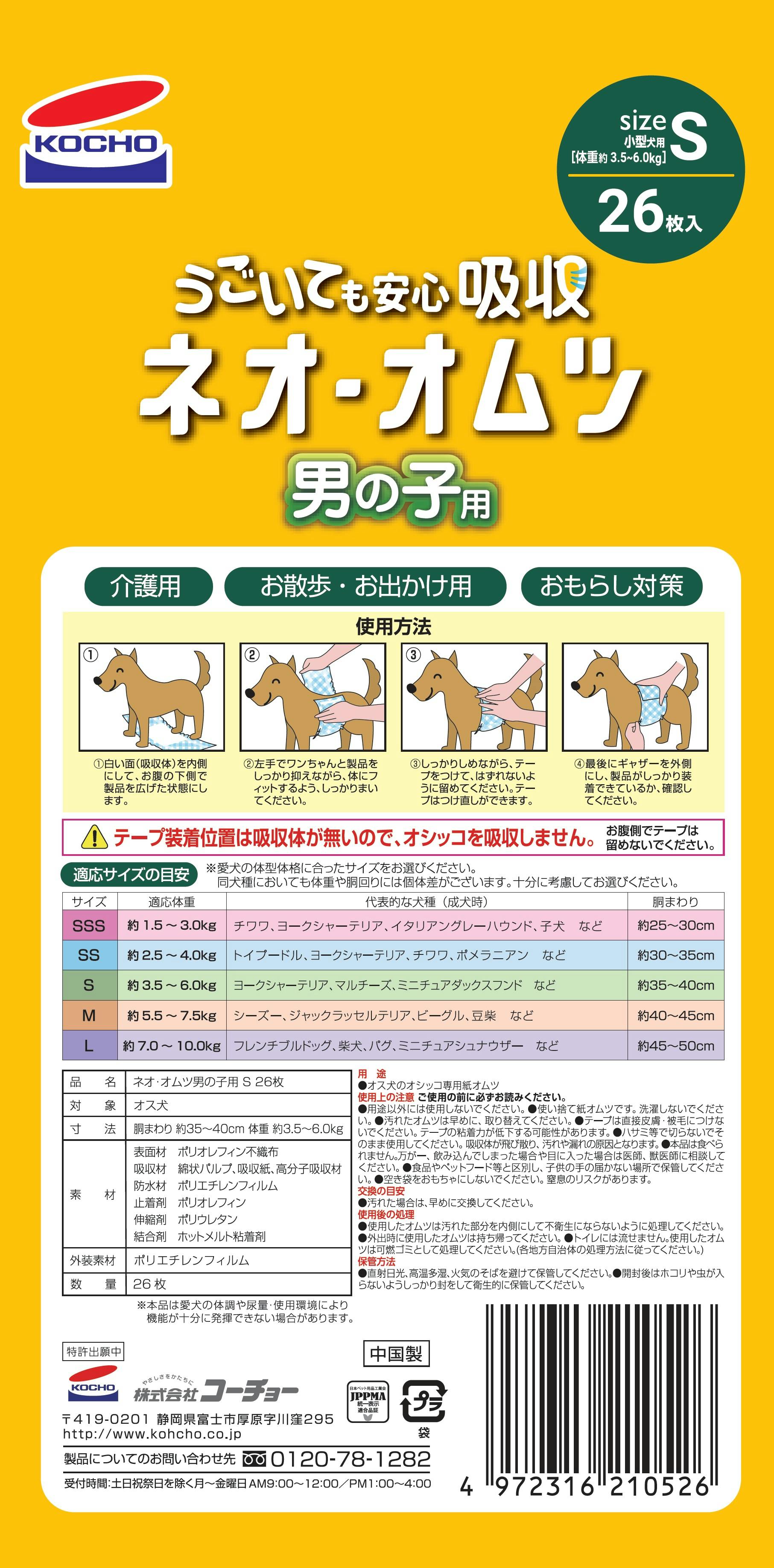 ネオ コーチョー ・オムツ男の子用S 26枚 犬オムツ お散歩 介護 3630463001【別送品】
