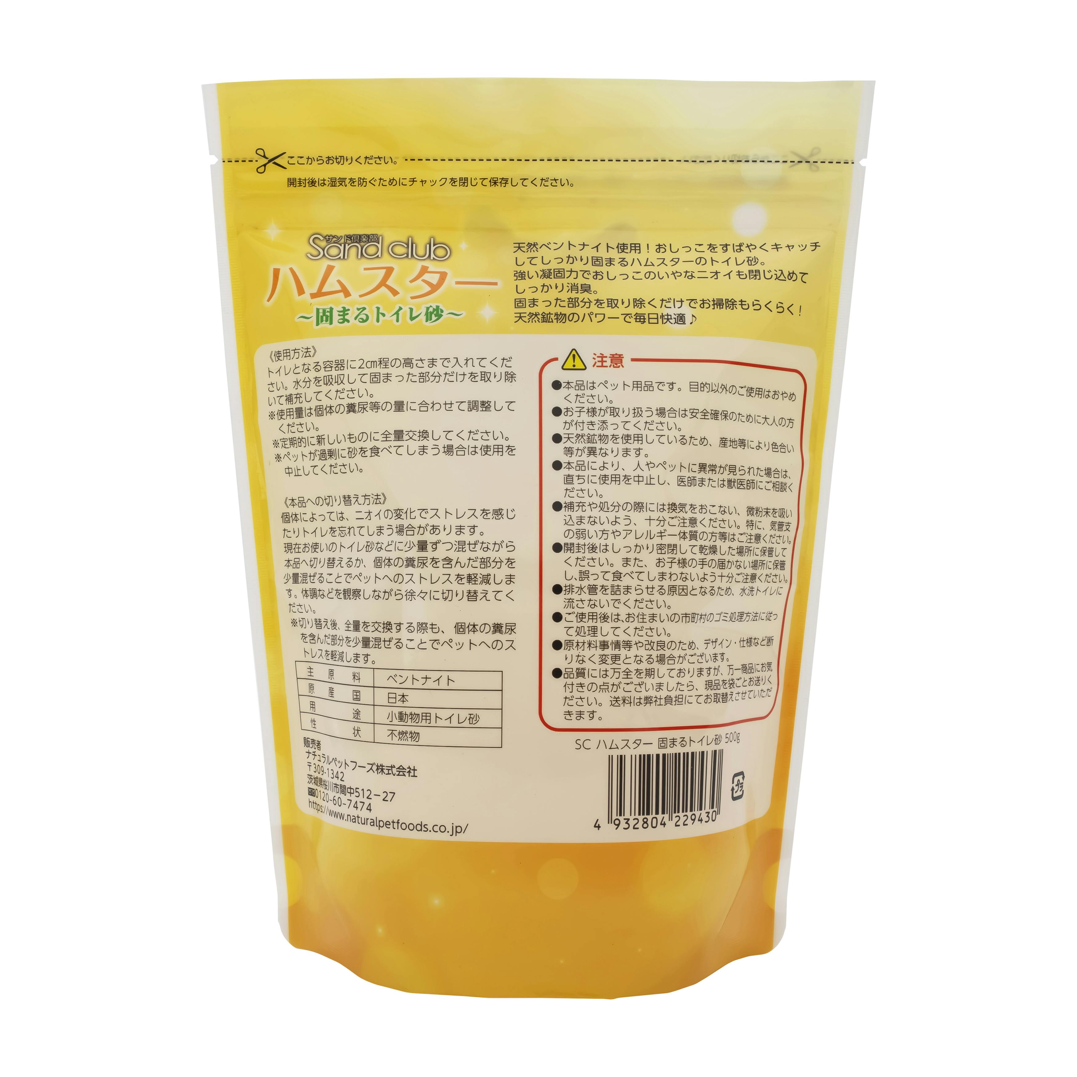 • Sand club ナチュラルペットフーズ ハムスター -固まるトイレ砂- 500g ハムスター 消臭 トイレ砂 4101054001【別送品】
